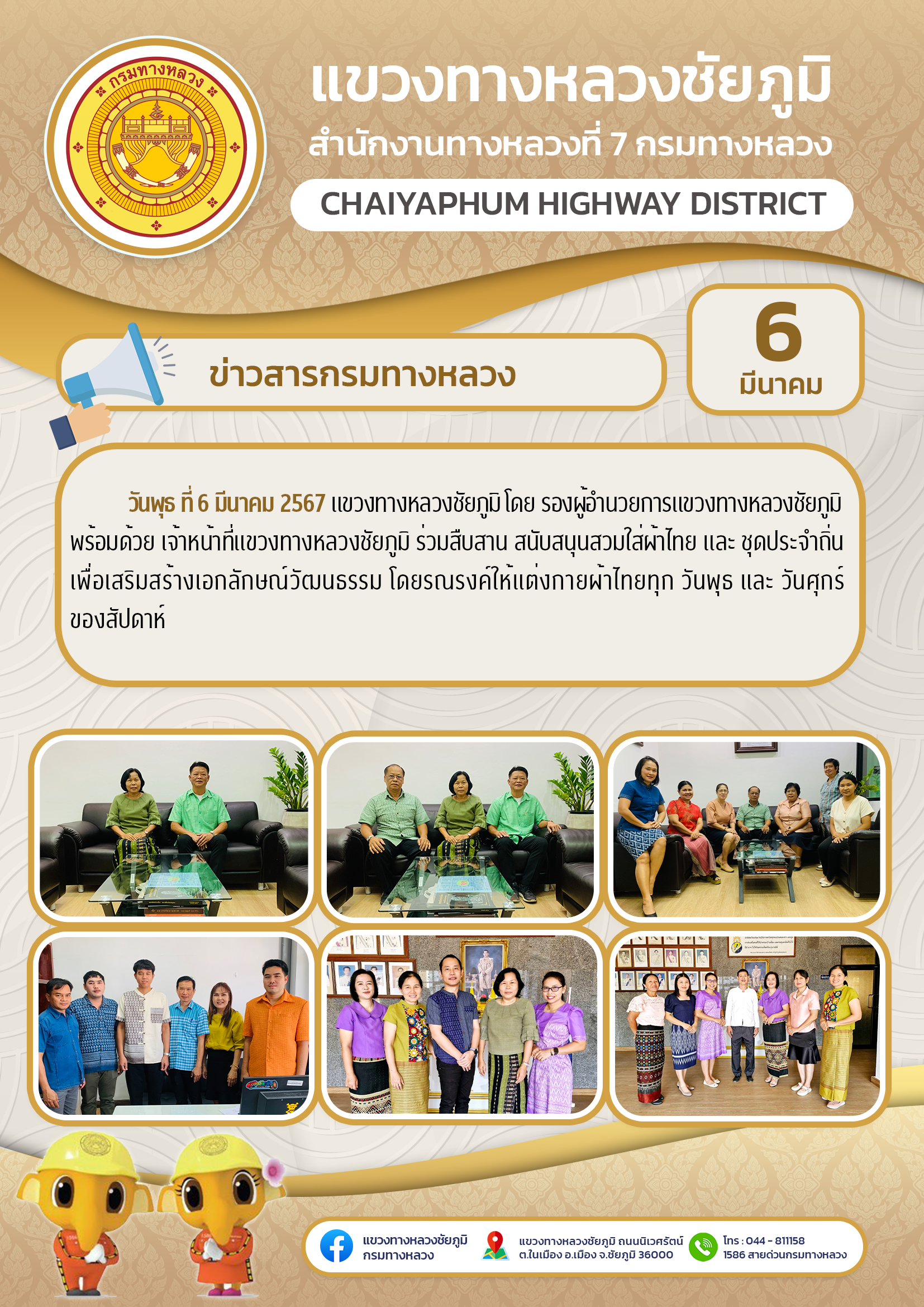 เจ้าหน้าที่แขวงทางหลวงชัยภูมิ ร่วมสืบสาน สนับสนุนสวมใส่ผ้าไทย และ ชุดประจำถิ่น