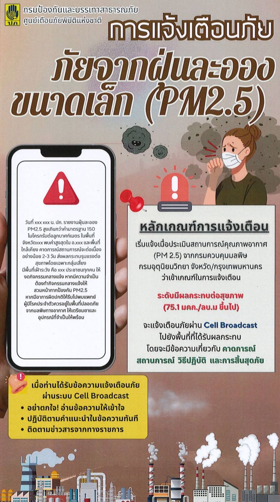 ประชาสัมพันธ์ สร้างการรับรู้และความเข้าใจการใช้งานระบบแจ้งเตือนภัย ผ่านสัญญาณโทรศัพท์เคลื่อนที่ ( Cell Broadcast )