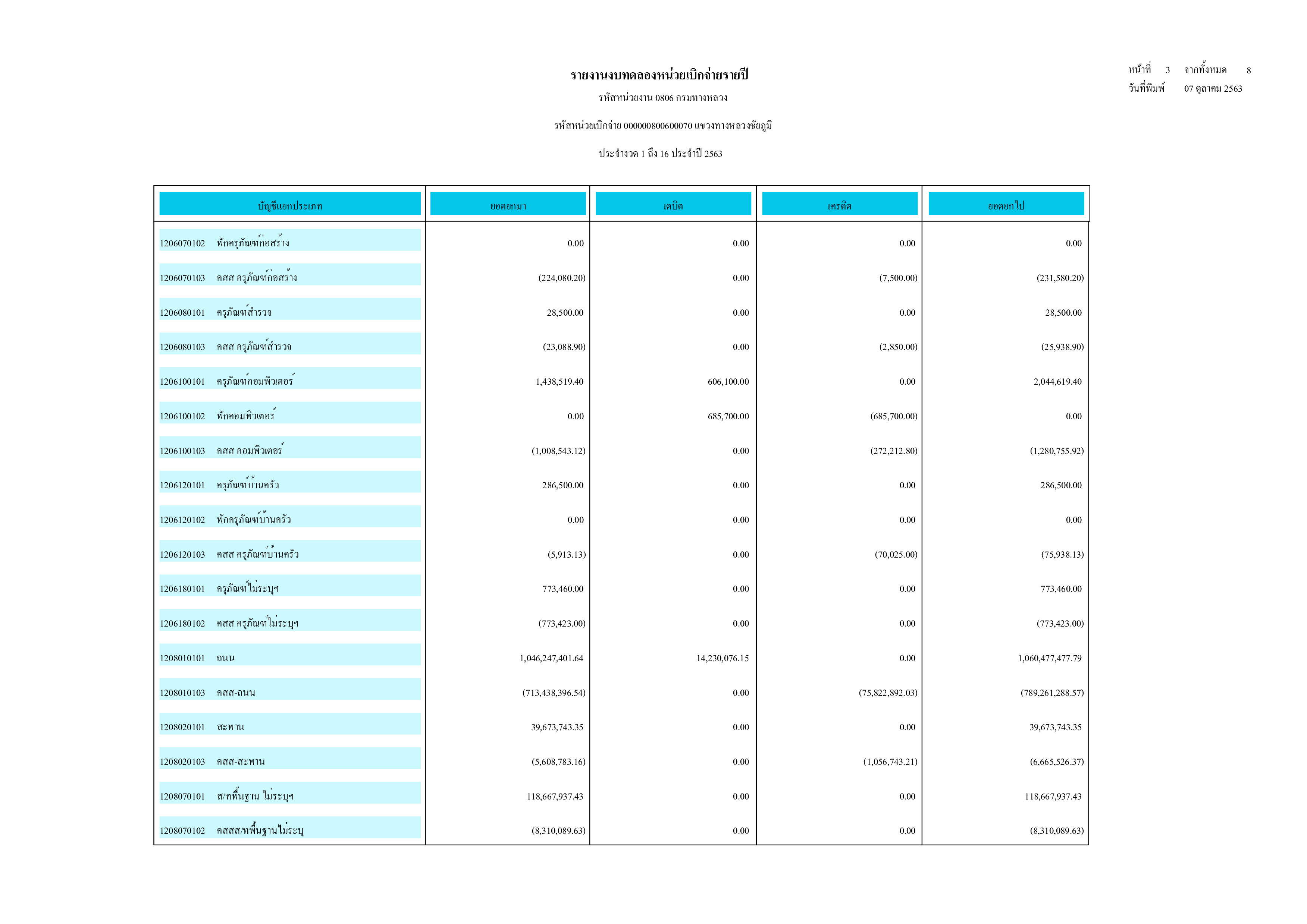 รายงานงบทดลองหน่วยเบิกจ่ายรายปี ประจำปี 2563 |