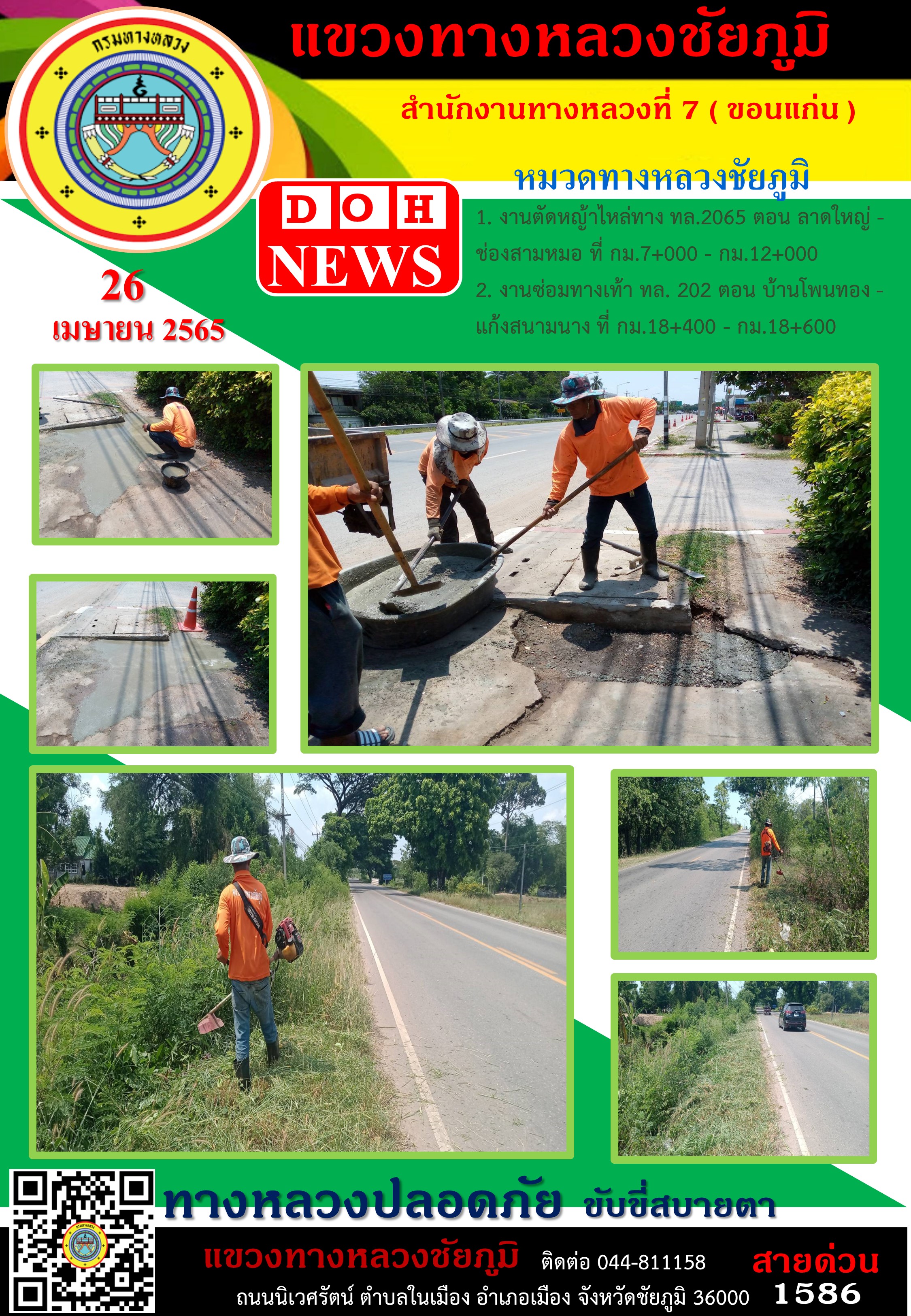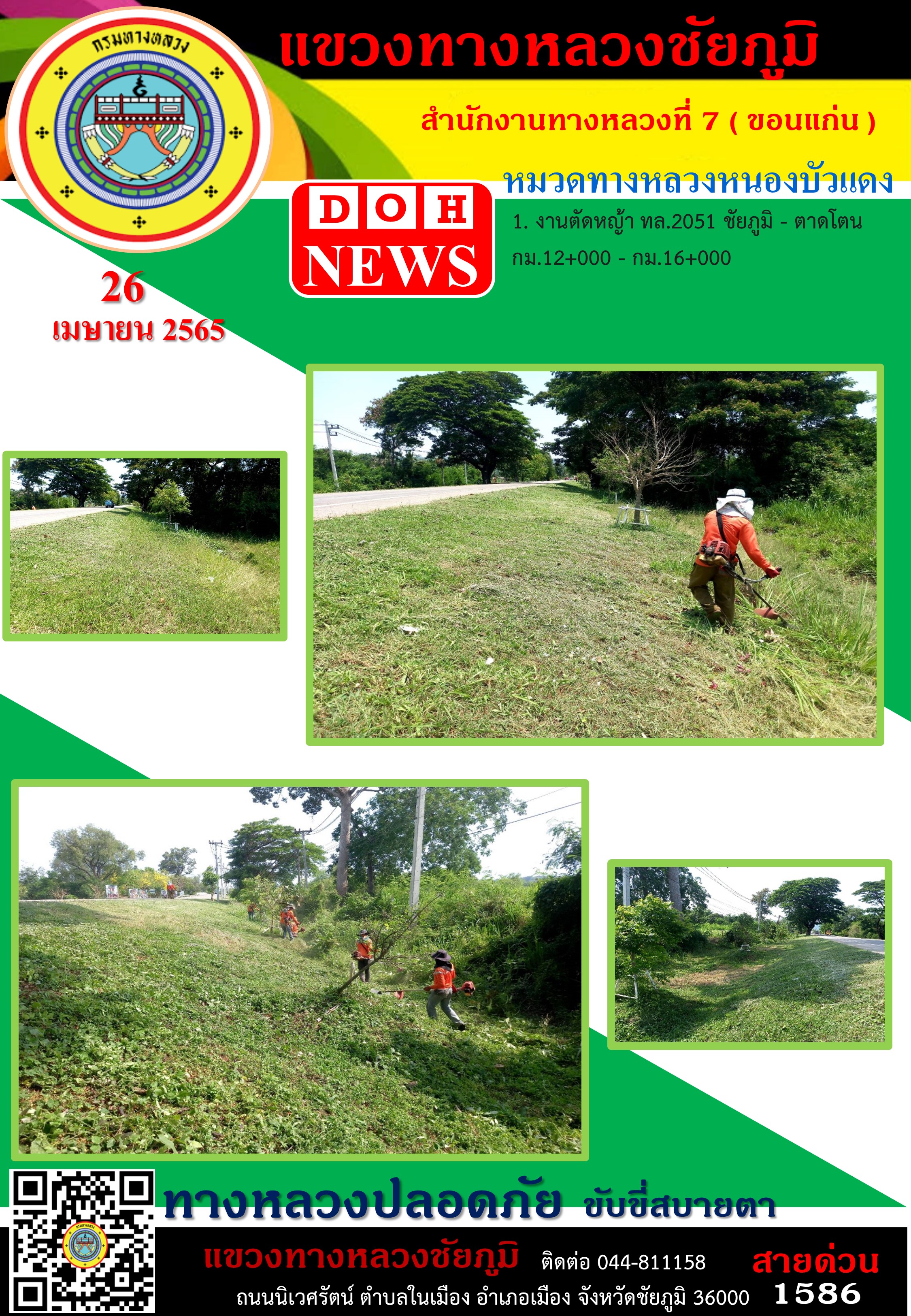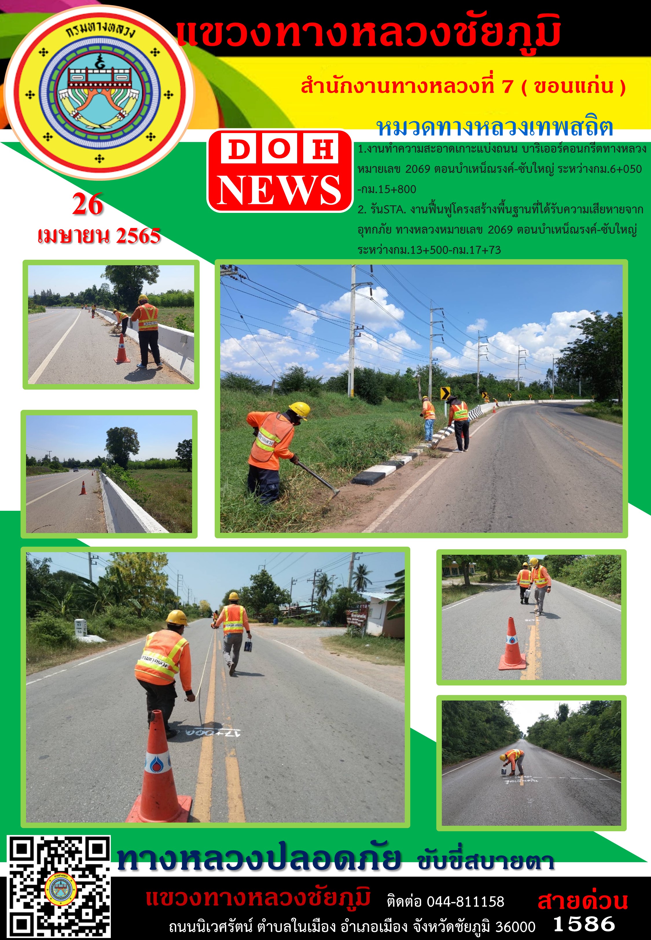 ข้อมูลภาพกิจกรรม : ทางหลวงปลอดภัย ขับขี่สบายตา ประจำวันที่ 26 เม.ย. 2565