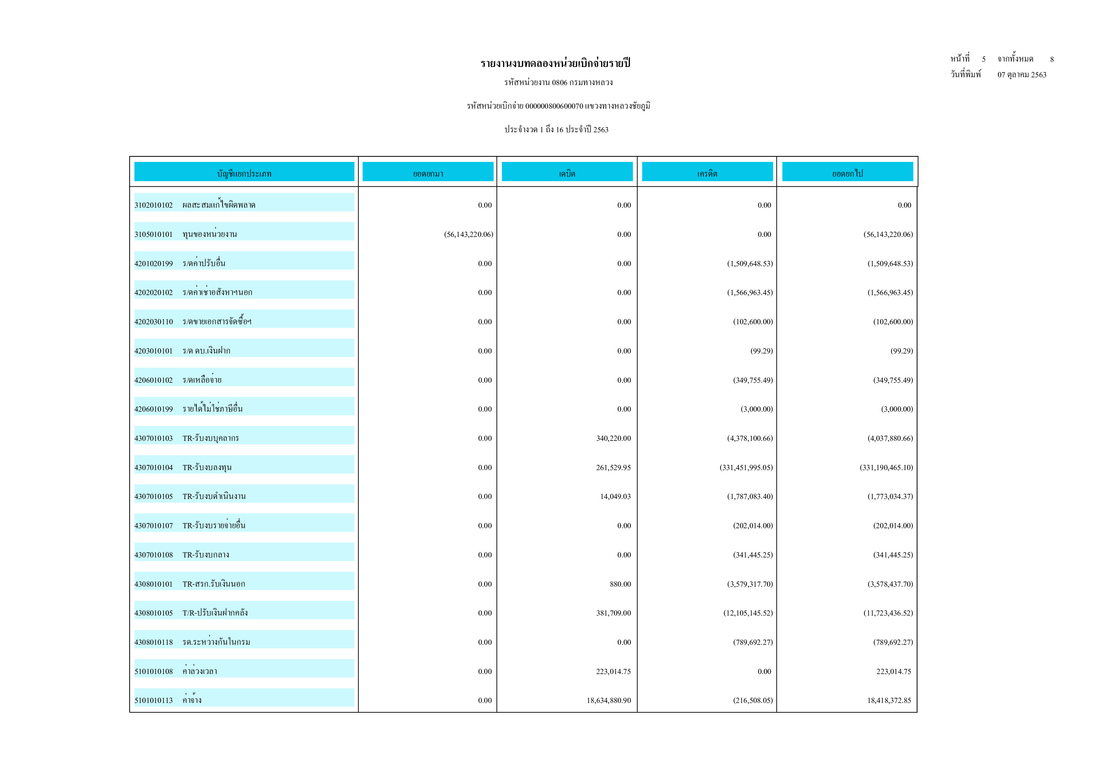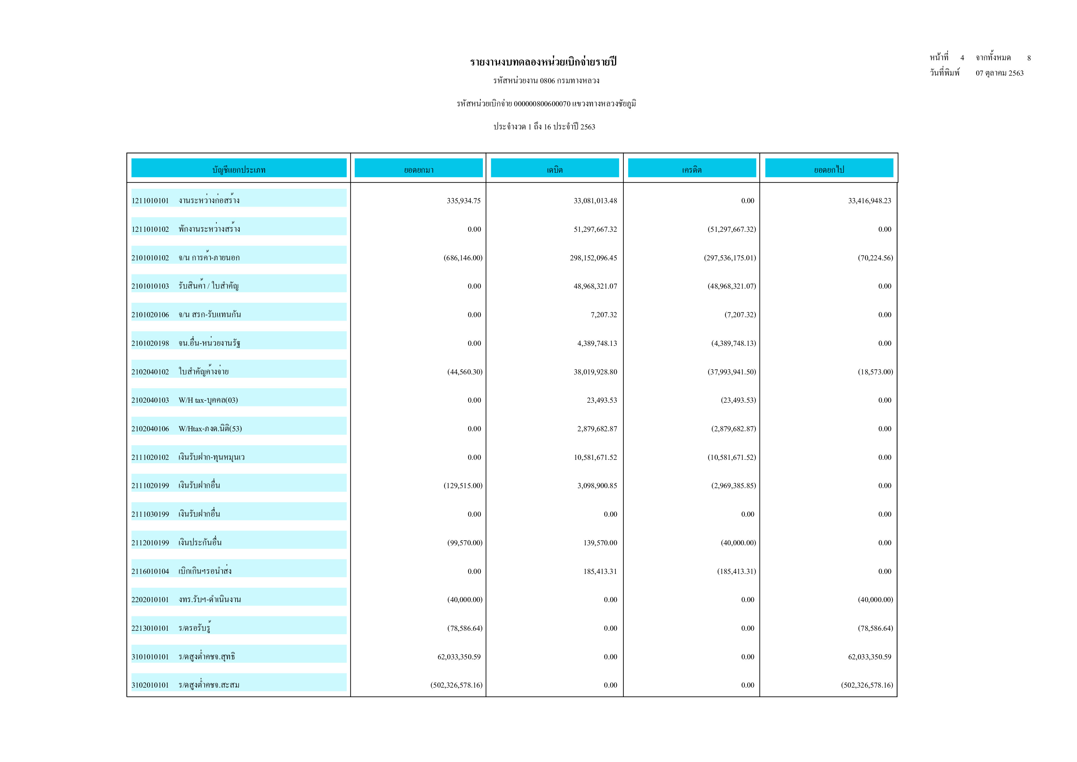 ข้อมูลข่าว : รายงานงบทดลองหน่วยเบิกจ่ายรายปี ประจำปี 2563