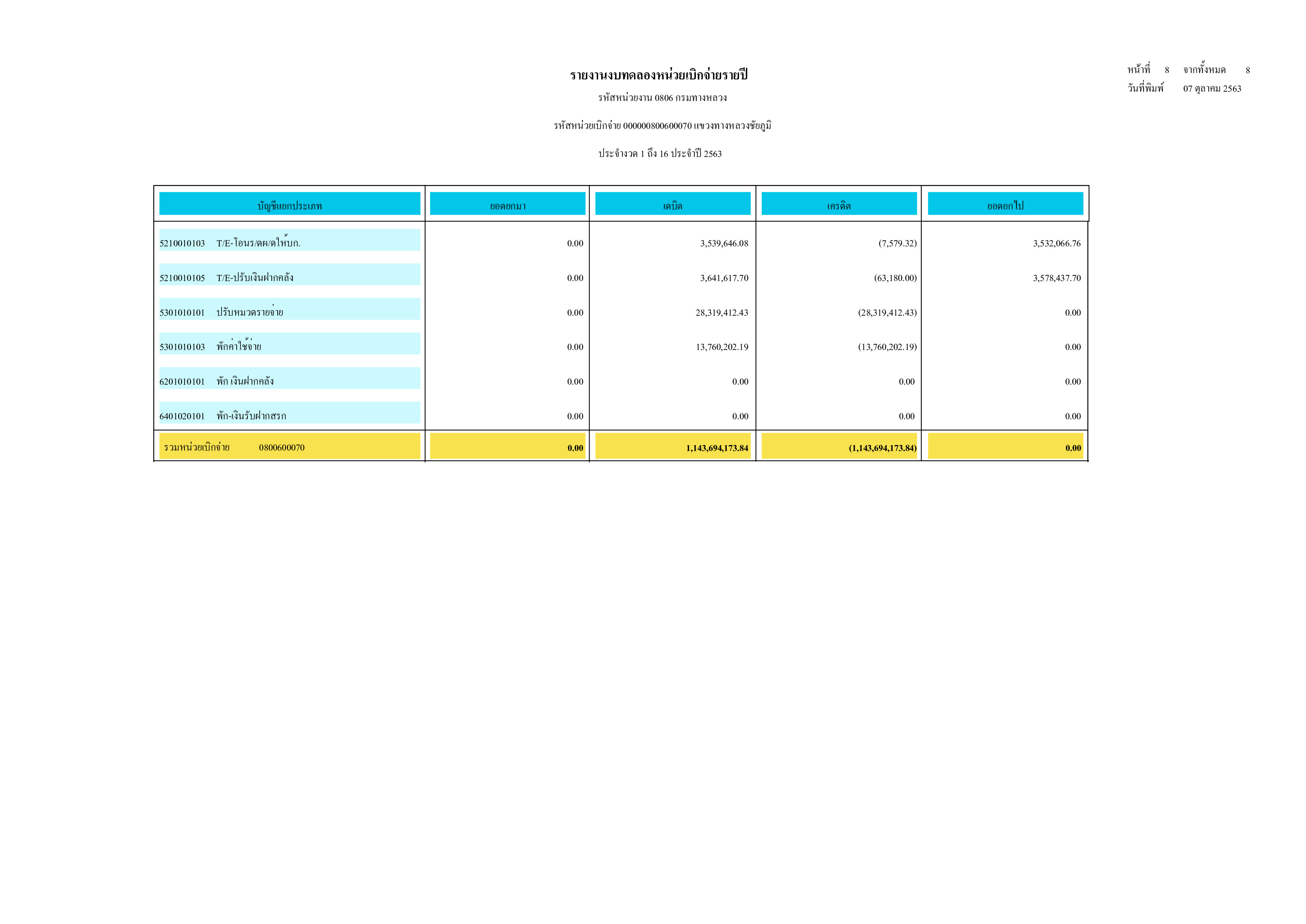 รายงานงบทดลองหน่วยเบิกจ่ายรายปี ประจำปี 2563