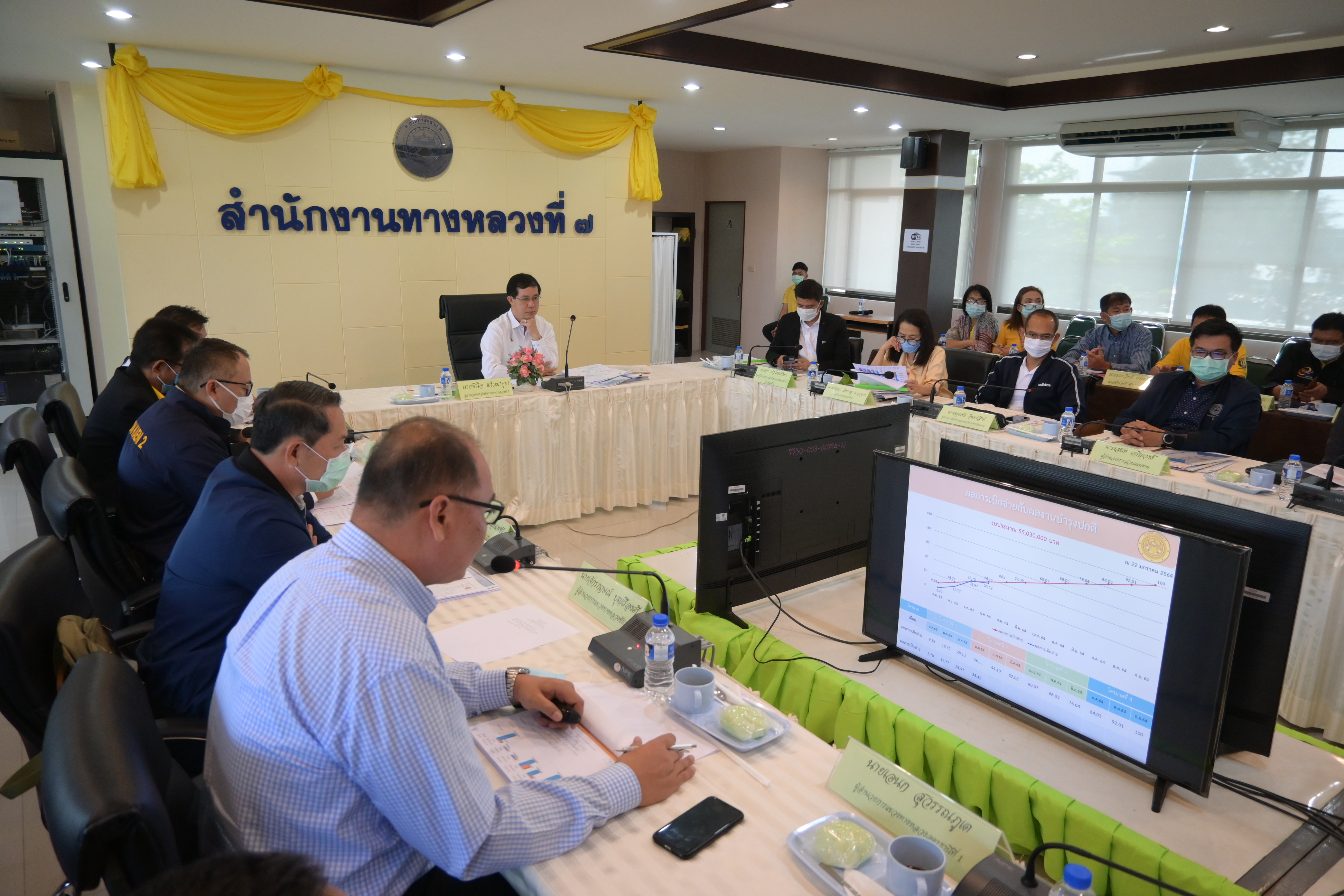 วันที่ 26 มกราคม 2564 เวลา 09.30 น. นายพินิจ แก้วมาคูณ ผู้อำนวยการสำนักงานทางหลวงที่ 7 (ขอนแก่น) เป็นประธานในการประชุมประจำเดือน มกราคม โดยมีนายจักรกฤษณ์ บุญเรืองศรี ผู้อำนวยการแขวงทางหลวงชัยภูมิ, นายนิทัศน์ จรัสพันธุ์ รองผู้อำนวยการแขวงทางหลวงชัยภูมิ (ฝ่ายปฏิบัติการ), นายปราโมทย์ วามะลุน รองผู้อำนวยการแขวงทางหลวงชัยภูมิ (ฝ่ายวิศวกรรม), นางสาวศรีสมร บัวดี รองผู้อำนวยการแขวงทางหลวงชัยภูมิ (ฝ่ายบริหาร) เข้าร่วมประชุม ณ ห้องประชุมสำนักงานทางหลวงที่ 7 ชั้น 3