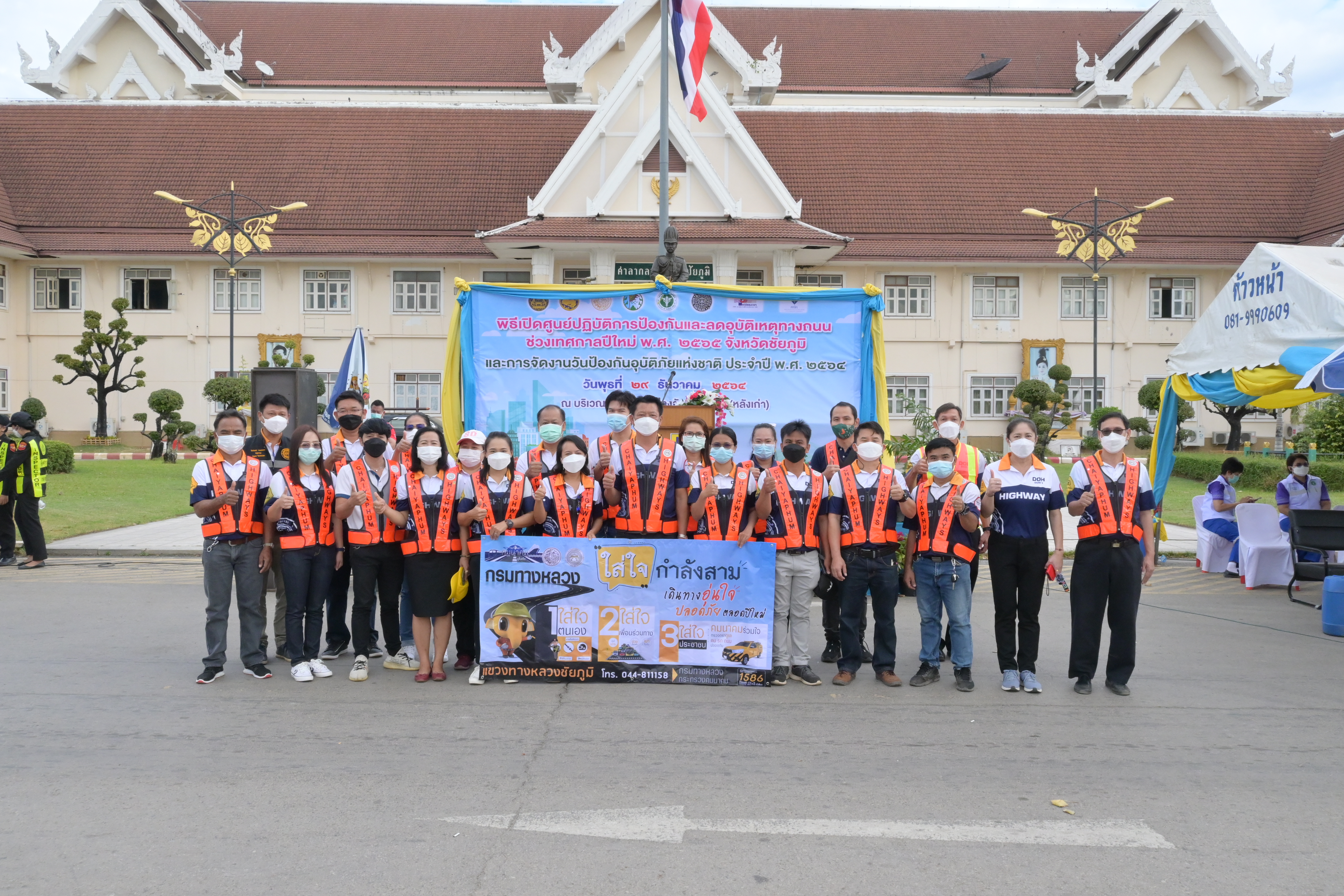 วันที่ 29 ธันวาคม 2564 นายจักรกฤษณ์ บุญเรืองศรี ผู้อำนวยการแขวงทางหลวงชัยภูมิ มอบหมายให้นายปราโมทย์ วามะลุน รองผู้อำนวยการแขวงทางหลวงชัยภูมิ ฝ่ายปฏิบัติการ พร้อมด้วยนายนิทัศน์ จรัสพันธุ์ รองผู้อำนวยการแขวงทางหลวงชัยภูมิ ฝ่ายวิศวกรรม และเจ้าหน้าที่แขวงฯ ร่วมพิธีเปิดศูนย์ปฏิบัติการป้องกันและลดอุบัติเหตุทางถนนช่วงเทศกาลปีใหม่ 2565และการจัดงานวันป้องกันอุบัติภัยแห่งชาติ ประจำปี 2564 ณ บริเวณหน้าศาลากลางจังหวัดชัยภูมิ (หลังเก่า) โดยมีนายสมบัติ ไตรศักดิ์ รองผู้ว่าราชการจังหวัดชัยภูมิ เป็นประธานในพิธี