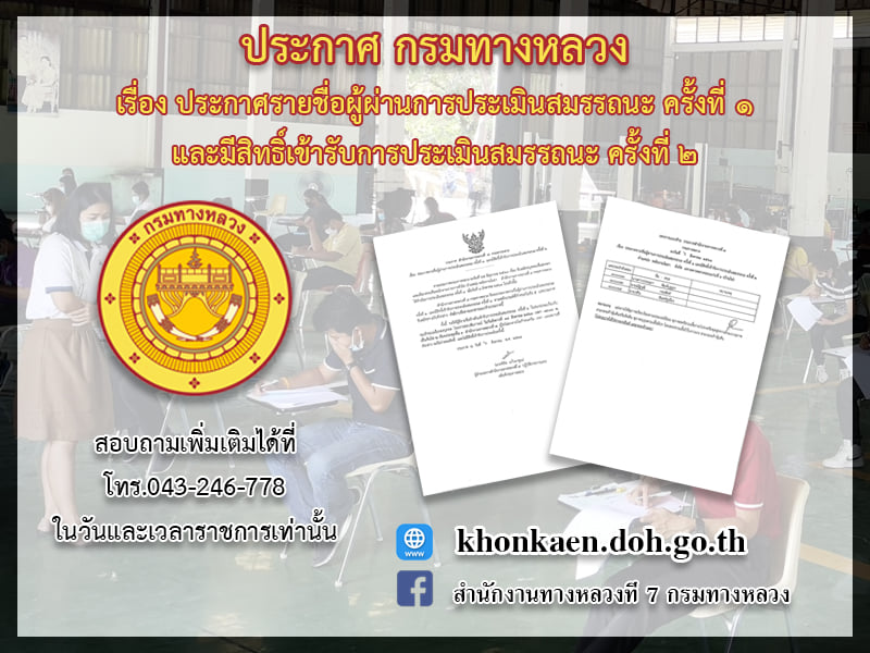 สำนักงานทางหลวงที่ ๗ กรมทางหลวง จึงขอประกาศรายชื่อผู้ผ่านการประเมินสมรรถนะ