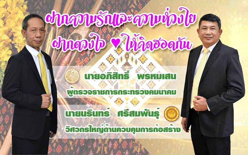 นายอภิสิทธิ์ พรหมเสน ผู้ตรวจราชการกระทรวงคมนาคม,นายนรินทร์ ศรีสมพันธ์  วิศวกรใหญ่ด้านควบคุมงานก่อสร้าง (วญส.)เดินทางตรวจเยี่ยมมอบขวัญและสร้างกำลังใจ ให้แก่ผู้ปฏิบัติงาน