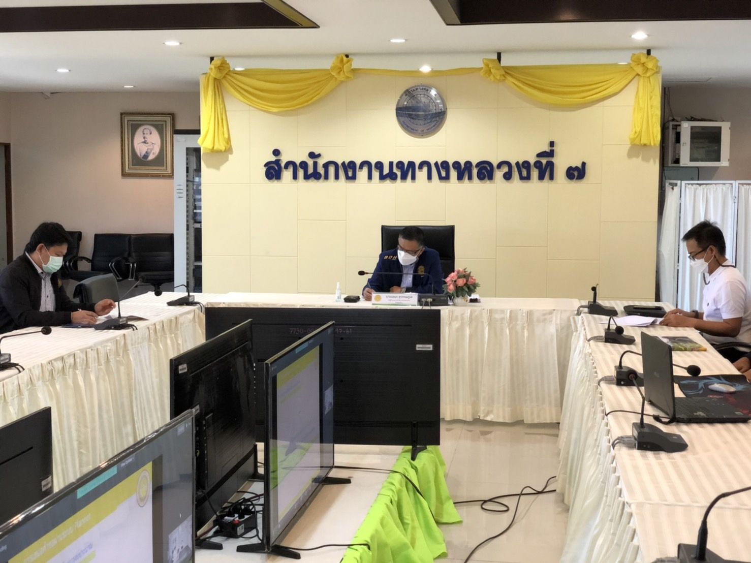 นายพินิจ แก้วมาคูณ ผู้อำนวยการสำนักงานทางหลวงที่ 7 (ขอนแก่น) พร้อมด้วย นายเอนก สุวรรณภูเต รองผู้อำนวยการสำนักงานทางหลวงที่ 7 ตำแหน่งที่ 2 นายธีรวัฒน์ พีระพัฒนพงษ์ ผู้อำนวยการส่วนสำรวจและออกแบบ และข้าราชการเจ้าหน้าที่ในสังกัด เข้าร่วมการประชุมผ่านระบบ Video Conference เพื่อเตรียมความพร้อมแผนการดำเนินงานงบประมาณรายจ่ายประจำปี งบประมาณ พ.ศ.2567 ณ ห้องประชุมสำนักงานทางหลวงที่ 7 ชั้น 3