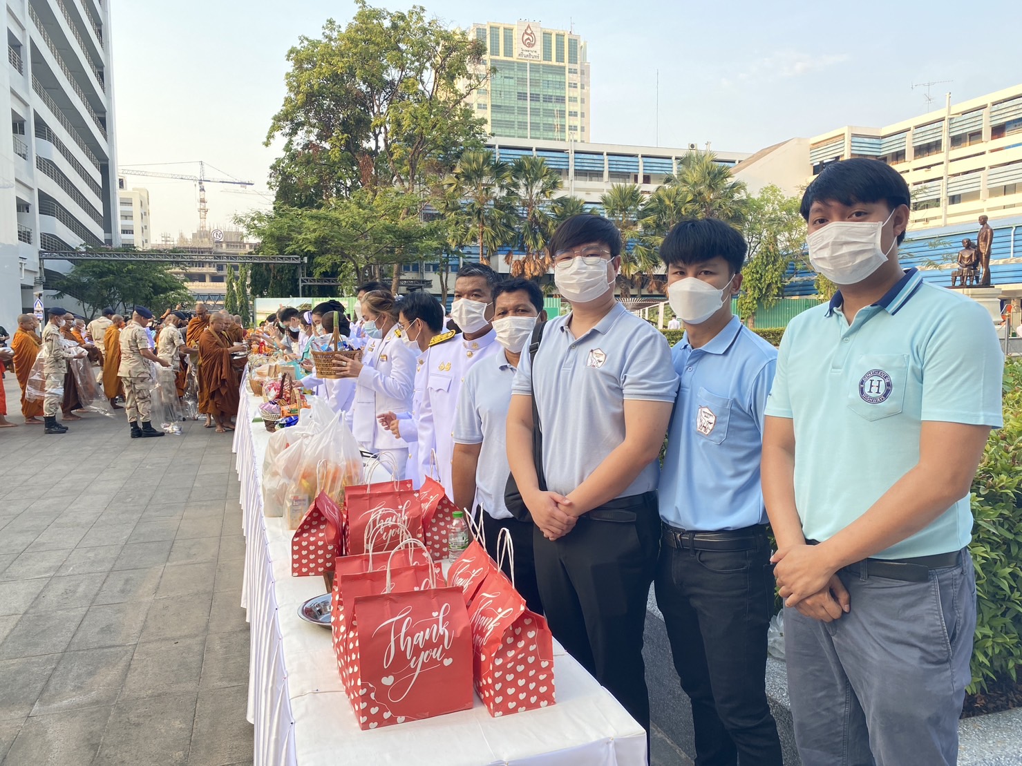 ร่วมพิธีทำบุญตักบาตร ณ บริเวณลานหน้าพระบรมราชานุสาวรีย์ โรงพยาบาลศรีนครินทร์ มหาวิทยาลัยขอนแก่น และ พิธีบำเพ็ญกุศลอุทิศถวาย