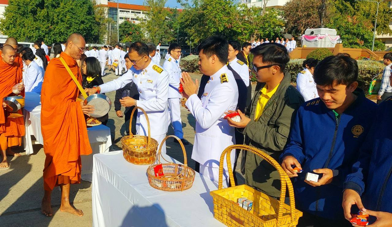 เวลา 08.00 น. ร่วมพิธีทำบุญตักบาตรถวายพระราชกุศล ณ บริเวณเฮือนโบราณ หน้าศาลากลางจังหวัดขอนแก่น