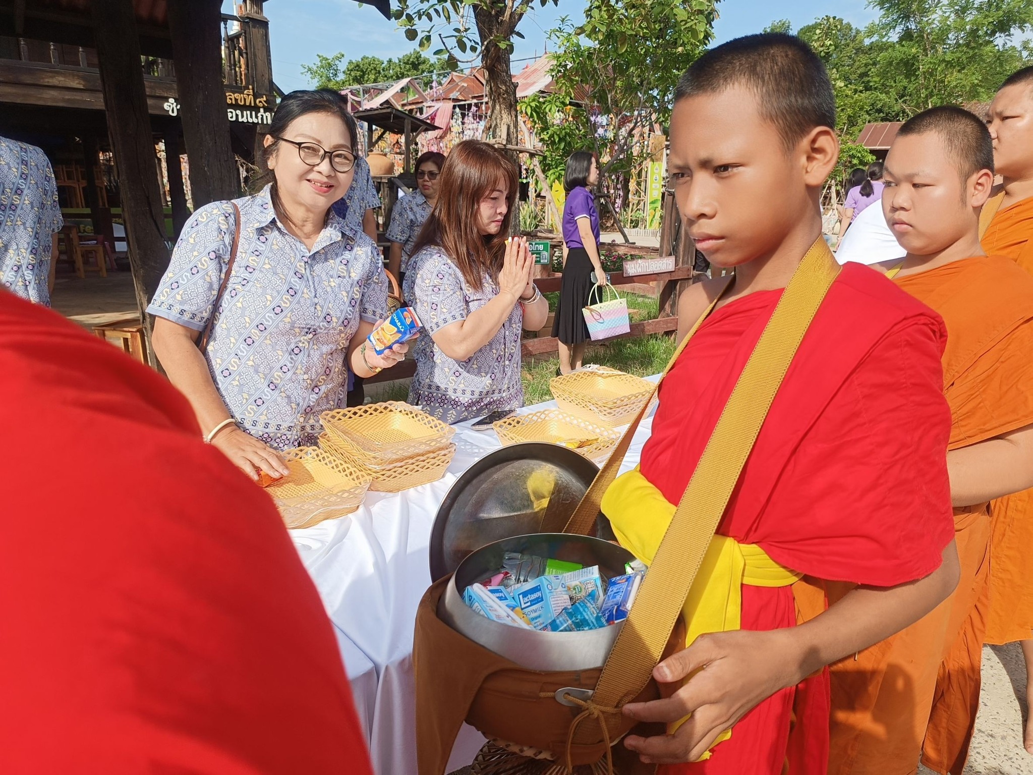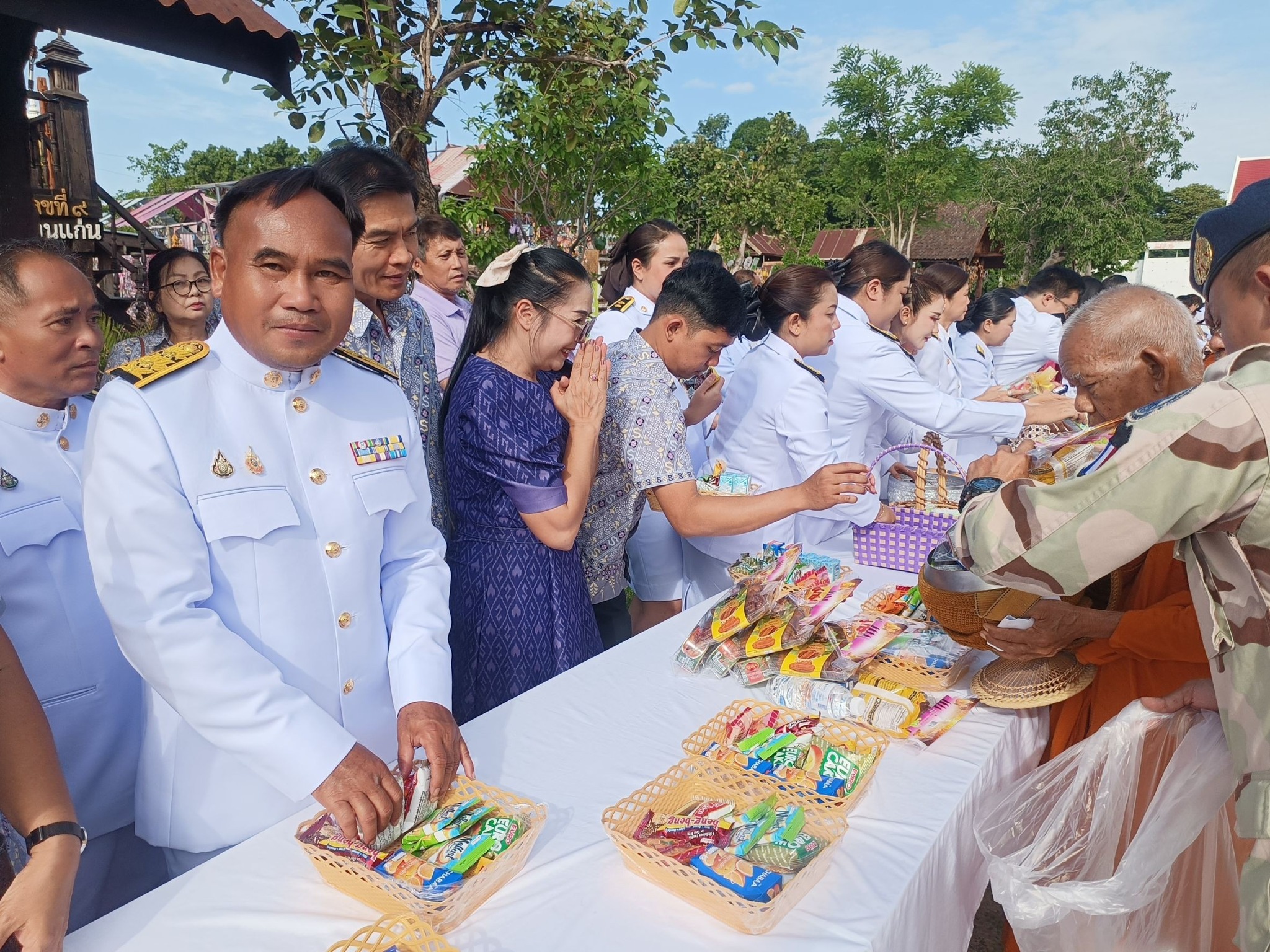 โดยได้ร่วมพิธีทำบุญตักบาตรถวายพระราชกุศล ในเวลา 07.00 น.