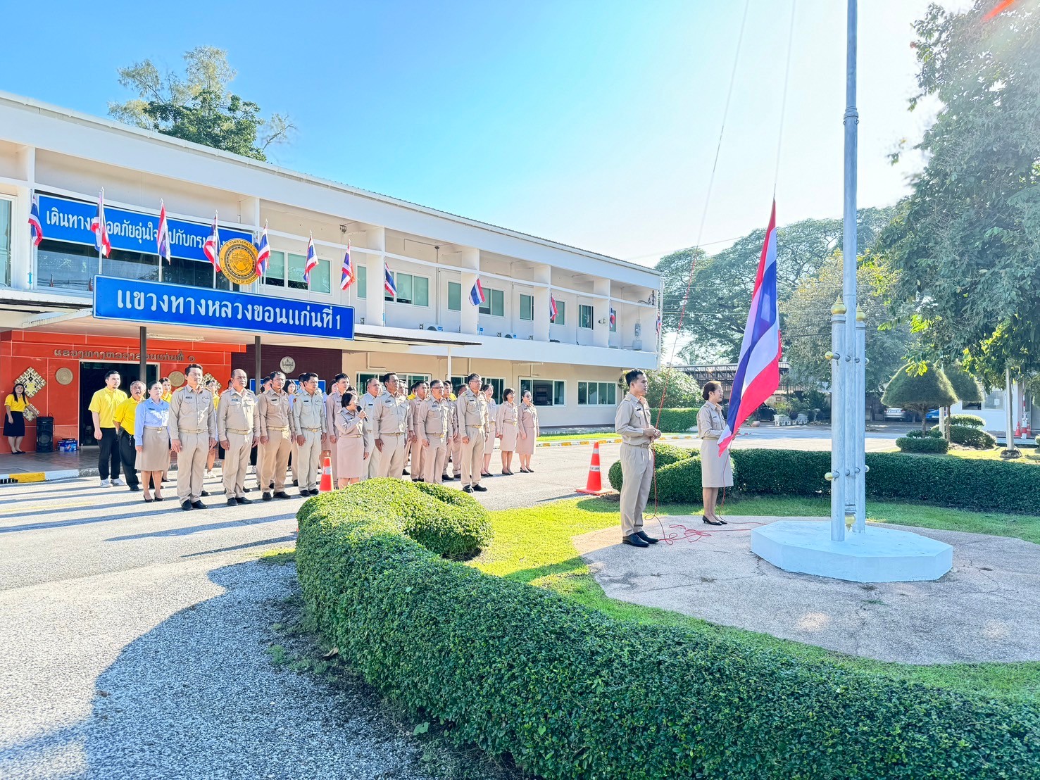 วันศุกร์ที่ 27 กันยายน 2567 นายเอนก สุวรรณภูเต ผู้อำนวยการแขวงทางหลวงขอนแก่นที่ 1 เป็นประธานในกิจกรรมเนื่องใน “วันพระราชทานธงชาติไทย (Thai National Flag Day)” ประจำปี 2567 โดยมีนายอนุวัฒน์ เรืองเดชาวิวัฒน์ รองผู้อำนวยการฝ่ายวิศวกรรม นายศุภลักษณ์ ศิริสุทธิ์ รองผู้อำนวยการฝ่ายปฏิบัติการ นางสาวพนารัตน์ เจริญราช รองผู้อำนวยการฝ่ายบริหาร พร้อมด้วยเหล่าข้าราชการ พนักงานราชการ และเจ้าหน้าที่ในสังกัด เข้าร่วมกิจกรรมฯ ณ สำนักงานแขวงทางหลวงขอนแก่นที่ 1
