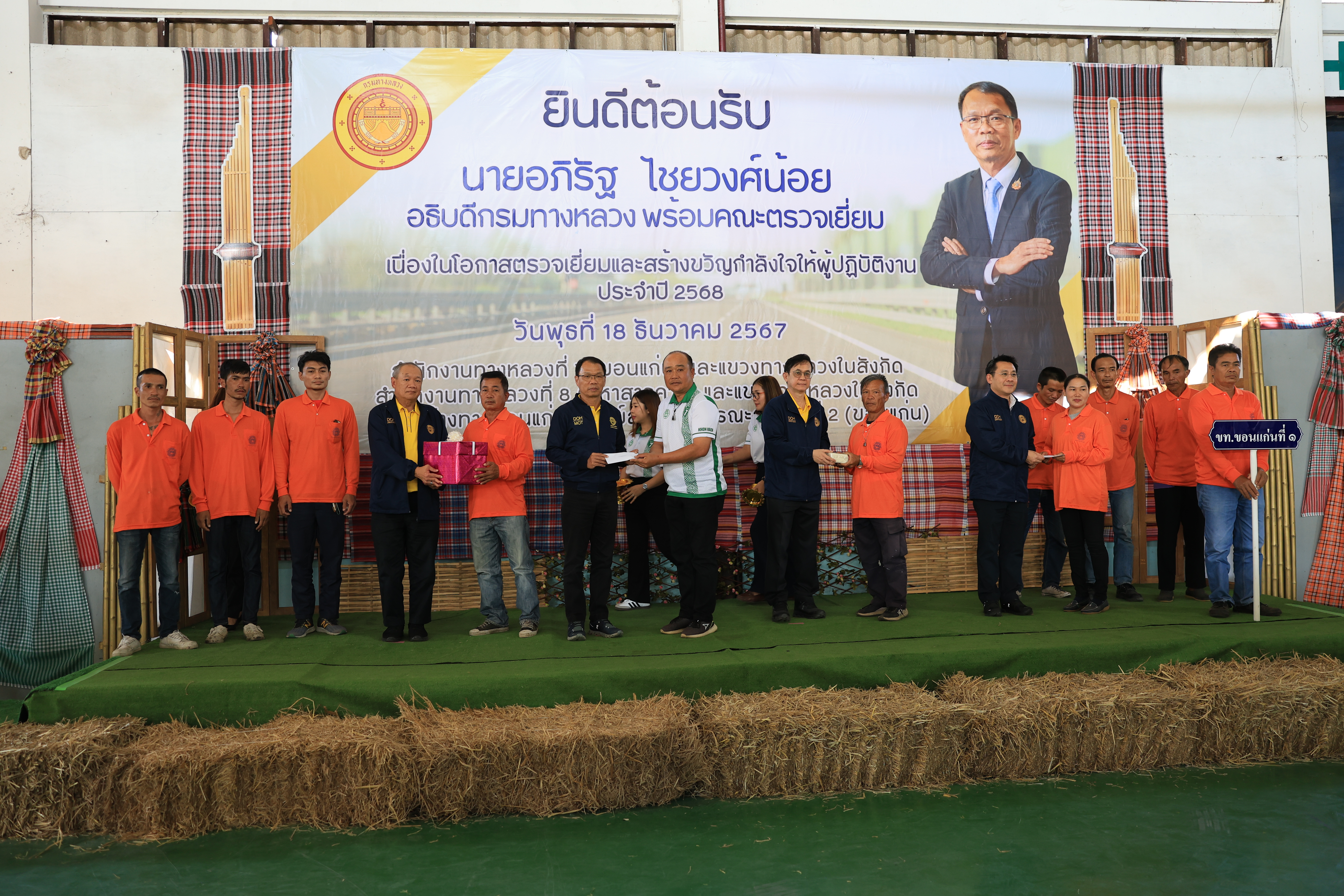 วันที่ 18 ธันวาคม 2567 นายเอนก สุวรรณภูเต ผู้อำนวยการแขวงทางหลวงขอนแก่นที่ 1 พร้อมด้วยคณะผู้บริหาร หัวหน้าหน่วยงาน หัวหน้าหมวดทางหลวง และเจ้าหน้าที่หมวดทางหลวงน้ำพอง ได้ร่วมต้อนรับ นายอภิรัฐ ไชยวงศ์น้อย อธิบดีกรมทางหลวง และคณะ เนื่องในโอกาสลงพื้นที่ตรวจเยี่ยมและสร้างขวัญกำลังใจแก่ผู้ปฏิบัติงาน ประจำปี 2568 พร้อมมอบของที่ระลึก และให้ข้อคิดในการปฏิบัติงาน โดยคำนึงถึงผลลัพธ์ที่ดีต่อองค์กรและประโยชน์แก่ประชาชนผู้ใช้ทางต่อไป ณ สำนักงานทางหลวงที่ 7 (ขอนแก่น)