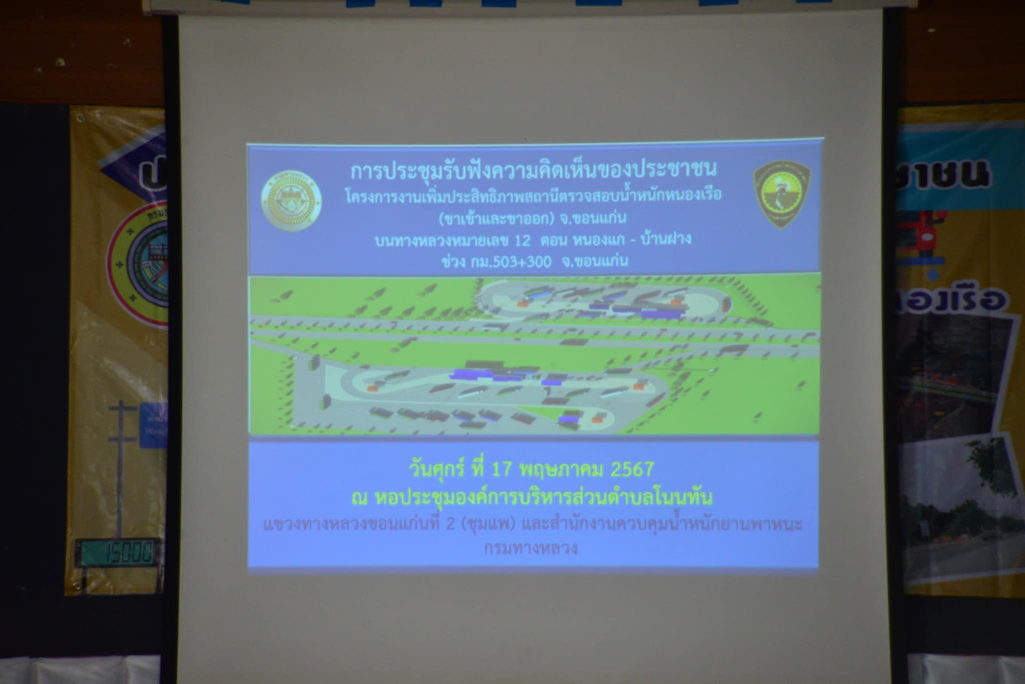 ประชุมการมีส่วนร่วมของประชาชน "โครงการงานเพิ่มประสิทธิภาพสถานีตรวจสอบน้ำหนักหนองเรือ (ขาเข้าและขาออก) จ.ขอนแก่น บนทางหลวงหมายเลข 12 ตอน หนองแก - บ้านฝาง ช่วง กม.503+300"