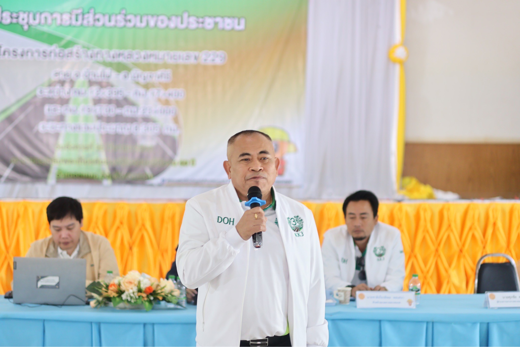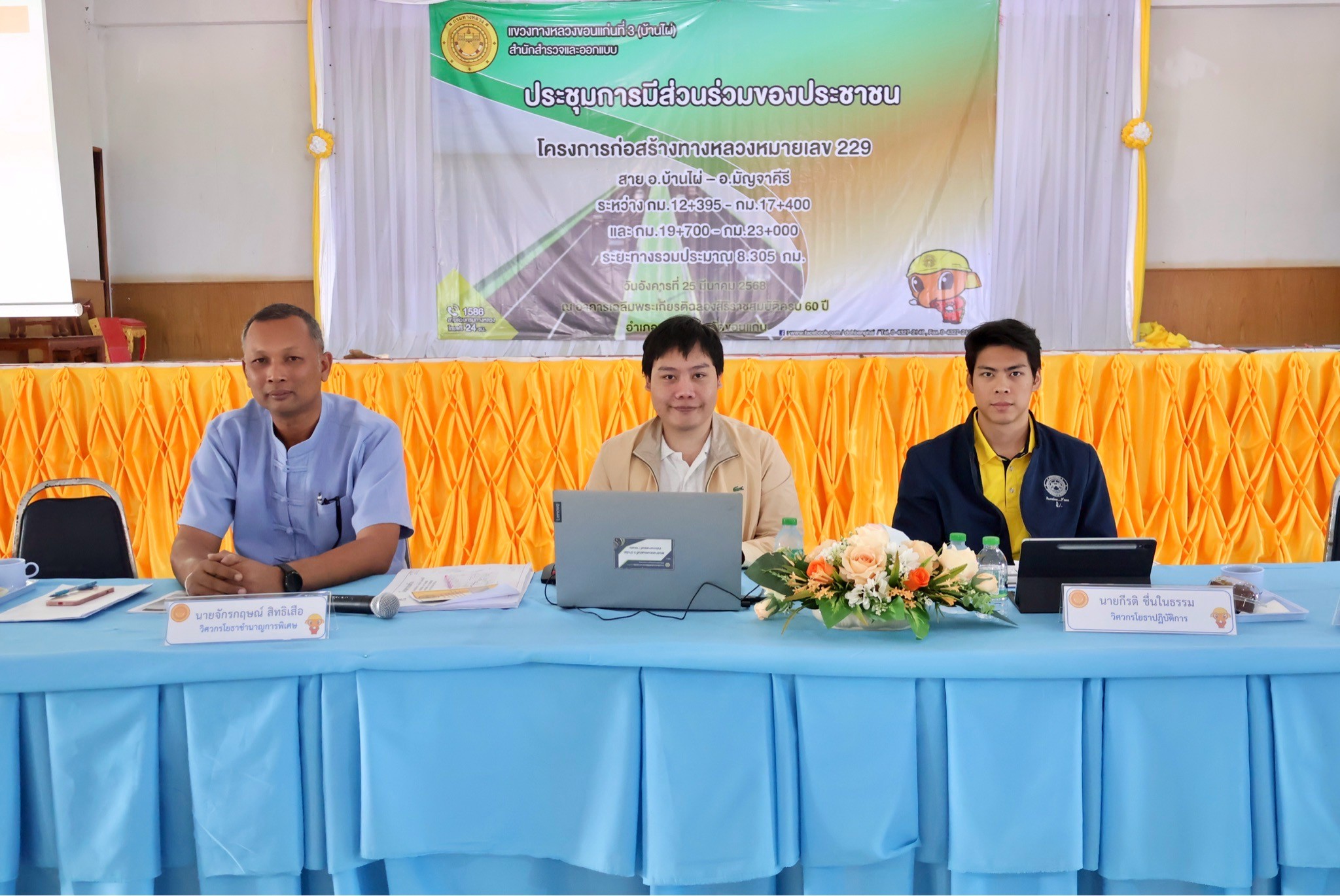 #นายศุภชัย ศรีโยธี ผู้อำนวยการแขวงทางหลวงขอนแก่นที่ 3 (บ้านไผ่) พร้อมด้วย นายอดิศร ตั้งพงษ์ รองผู้อำนวยการ (ฝ่ายปฏิบัติการ) นางสุนันทา มุ่งก่อกลาง รองผู้อำนวยการ (ฝ่ายบริหารงานทั่วไป) หัวหน้าหมวดทางหลวงในสังกัด และเจ้าหน้าที่ที่เกี่ยวข้อง ได้จัดการประชุมการมีส่วนร่วมของประชาชนใน “โครงการก่อสร้างทางหลวงหมายเลข 229 ตอน บ้านไผ่ - มัญจาคีรี ระหว่าง กม.12+395 - กม.17+400 และ กม.19+700 - กม.23+000 ระยะทาง 8.305 กม.” โดยมี นายปิยะพงษ์ คลังทอง นายอำเภอชนบท ประธานกล่าวเปิดงาน ทั้งนี้ ผู้เข้าร่วมประชุมจากหน่วยงานภาครัฐ ประชาชนที่อาศัยในเส้นทางดังกล่าว ผู้ใช้เส้นทาง ผู้นำชุมชน และประชาชนที่เกี่ยวข้อง ได้ร่วมแสดงความคิดเห็นและข้อเสนอแนะต่าง ๆ ที่จะเป็นประโยชน์ต่อการดำเนินโครงการ ซึ่งที่ประชุมมีมติเห็นชอบต่อโครงการก่อสร้างดังกล่าวเป็นจำนวนมาก นอกจากนี้ นายจักรกฤษณ์ สิทธิเสือ วิศวกรโยธาชำนาญการพิเศษ นายพรรคเชษฎ์ บุญธรรมกุล วิศวกรโยธาชำนาญการ นายกีรติ ชื่นในธรรม วิศวกรโยธาปฏิบัติการ และนายชาติเกียรติพล พลเสนา หัวหน้าหมวดทางหลวงชนบท ได้เป็นวิทยากรนำเสนอความเป็นมาของโครงการและรายละเอียดรูปแบบของโครงการ พร้อมรับฟังความคิดเห็นและข้อเสนอแนะ เพื่อนำไปศึกษาเพิ่มเติมและจัดทำแผนปฏิบัติการต่อไป ณ อาคารเฉลิมพระเกียรติฉลองสิริราชสมบัติครบ 60 ปี อำเภอชนบท จังหวัดขอนแก่น