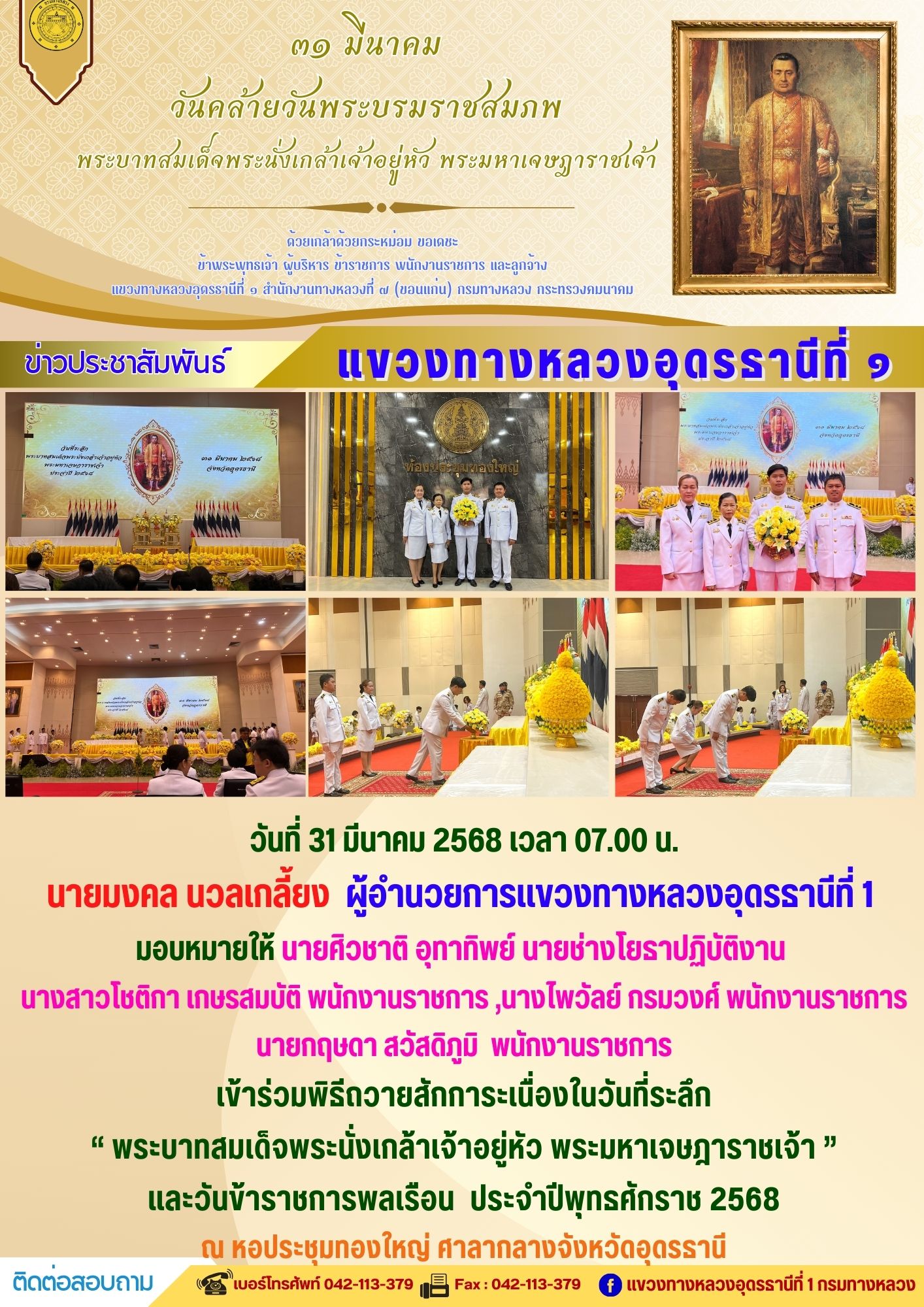 148 31/03/2568 เข้าร่วมพิธีถวายสักการะเนื่องในวันที่ระลึก “ พระบาทสมเด็จพระนั่งเกล้าเจ้าอยู่หัว พระมหาเจษฎาราชเจ้า ” และวันข้าราชการพลเรือน ประจำปีพุทธศักราช 2568