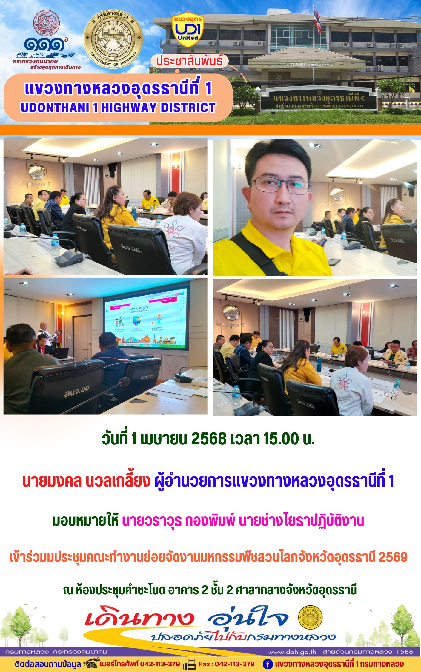 144 01/04/2568 เข้าร่วมมประชุมคณะทำงานย่อยจัดงานมหกรรมพืชสวนโลกจังหวัดอุดรธานี 2569
