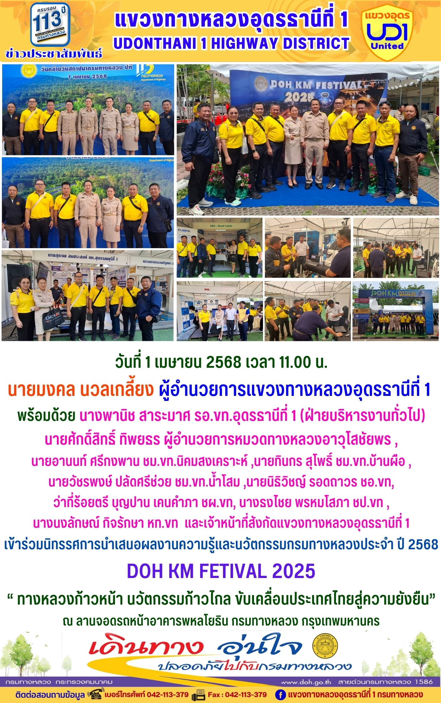 145 01/04/2568 เข้าร่วมนิทรรศการนำเสนอผลงานความรู้และนวัตกรรมกรมทางหลวง DOH KM FETIVAL 2025
