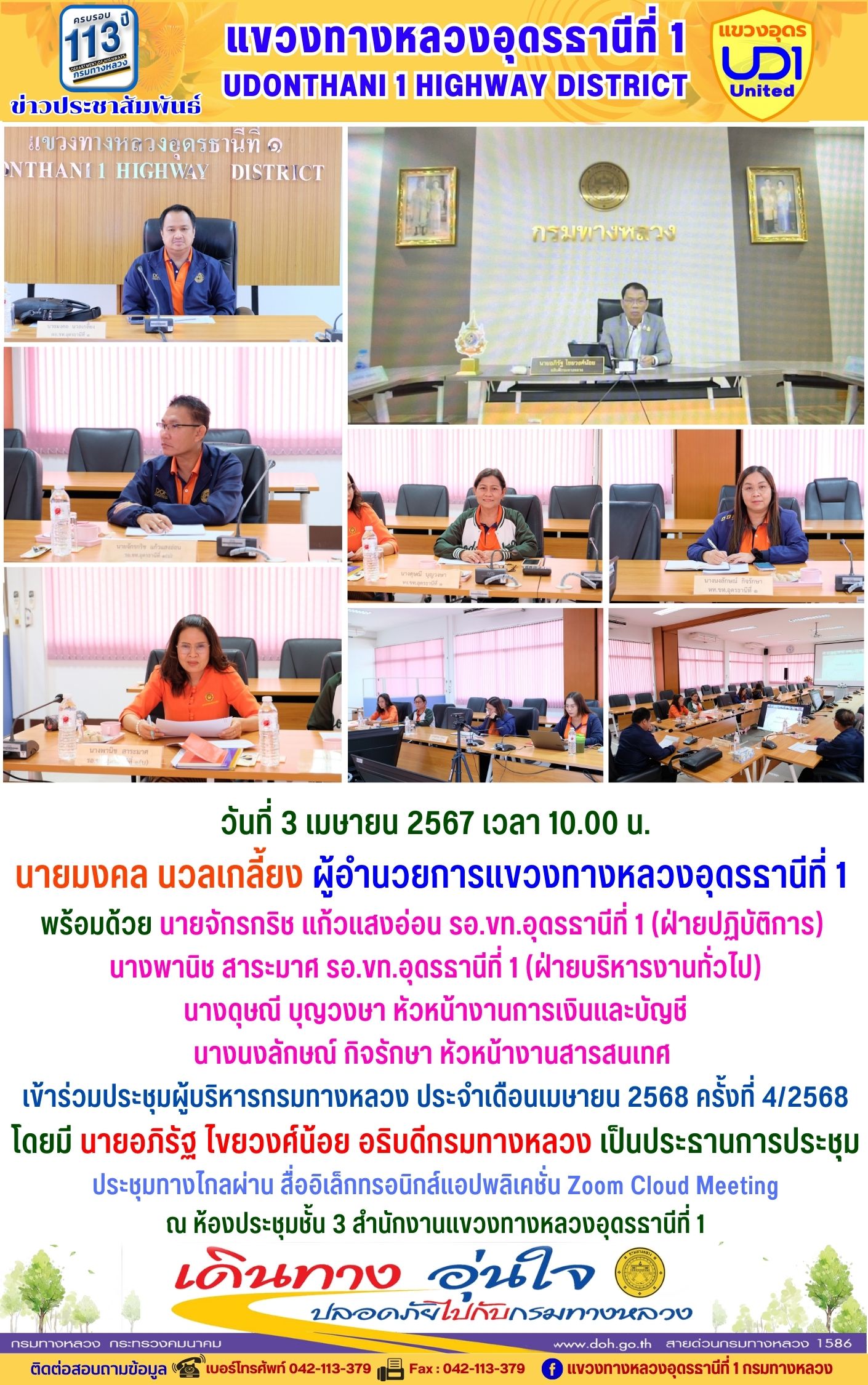 142 03/04/2568 เข้าร่วมประชุมผู้บริหารกรมทางหลวง ประจำเดือนเมษายน 2568 ครั้งที่ 4/2568