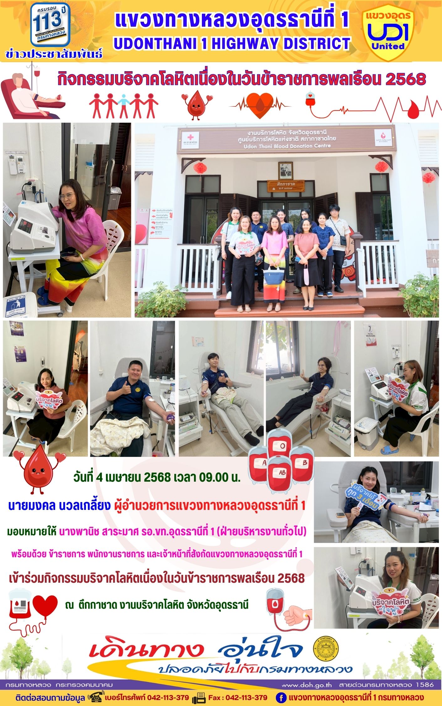 140 04/04/2568 เข้าร่วมกิจกรรมบริจาคโลหิตเนื่องในวันข้าราชการพลเรือน 2568