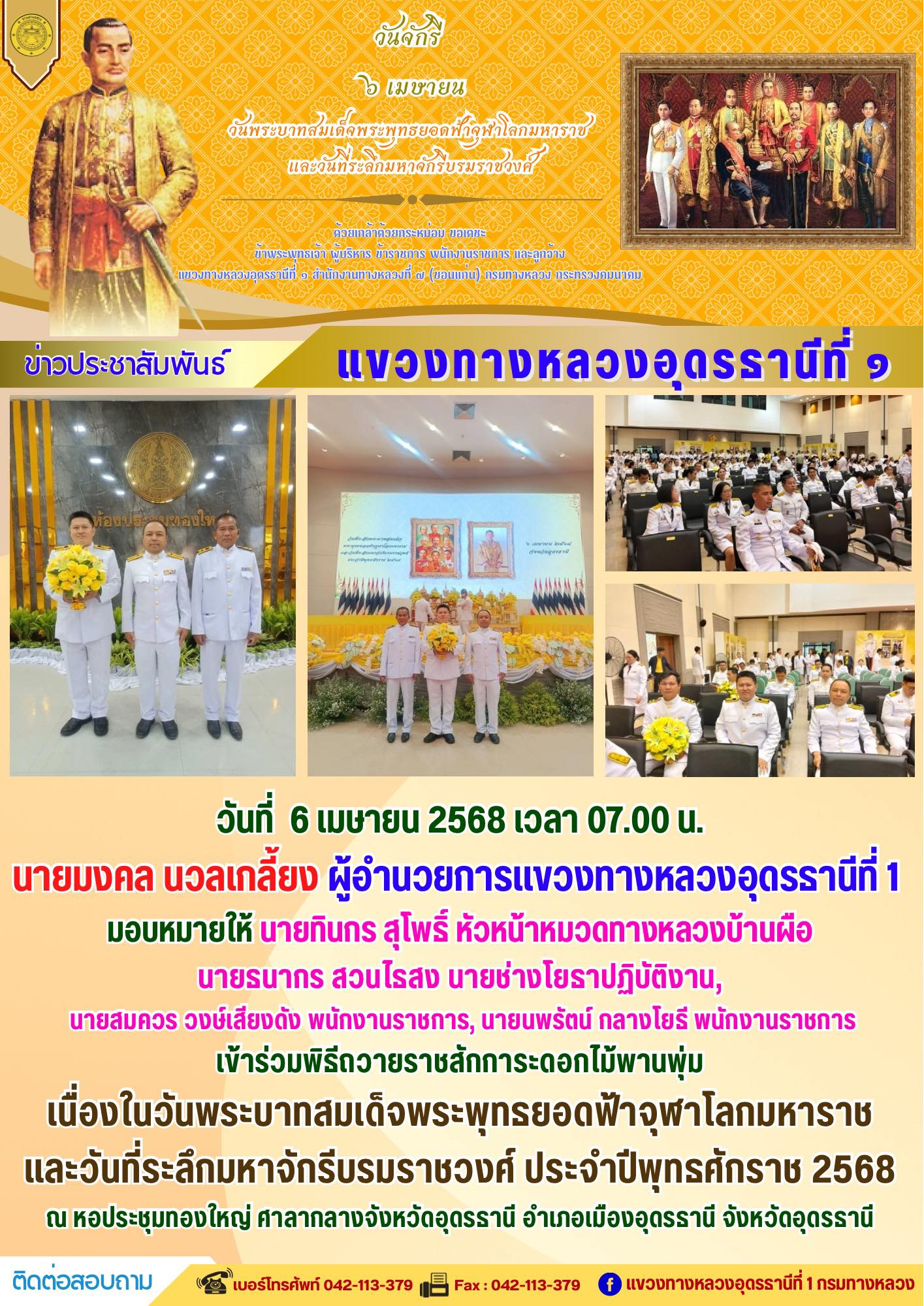 138 08/04/2568 เข้าร่วมพิธีถวายราชสักการะดอกไม้พานพุ่ม เนื่องในวันพระบาทสมเด็จพระพุทธยอดฟ้าจุฬาโลกมหาราช และวันที่ระลึกมหาจักรีบรมราชวงศ์ ประจำปีพุทธศักราช 2568