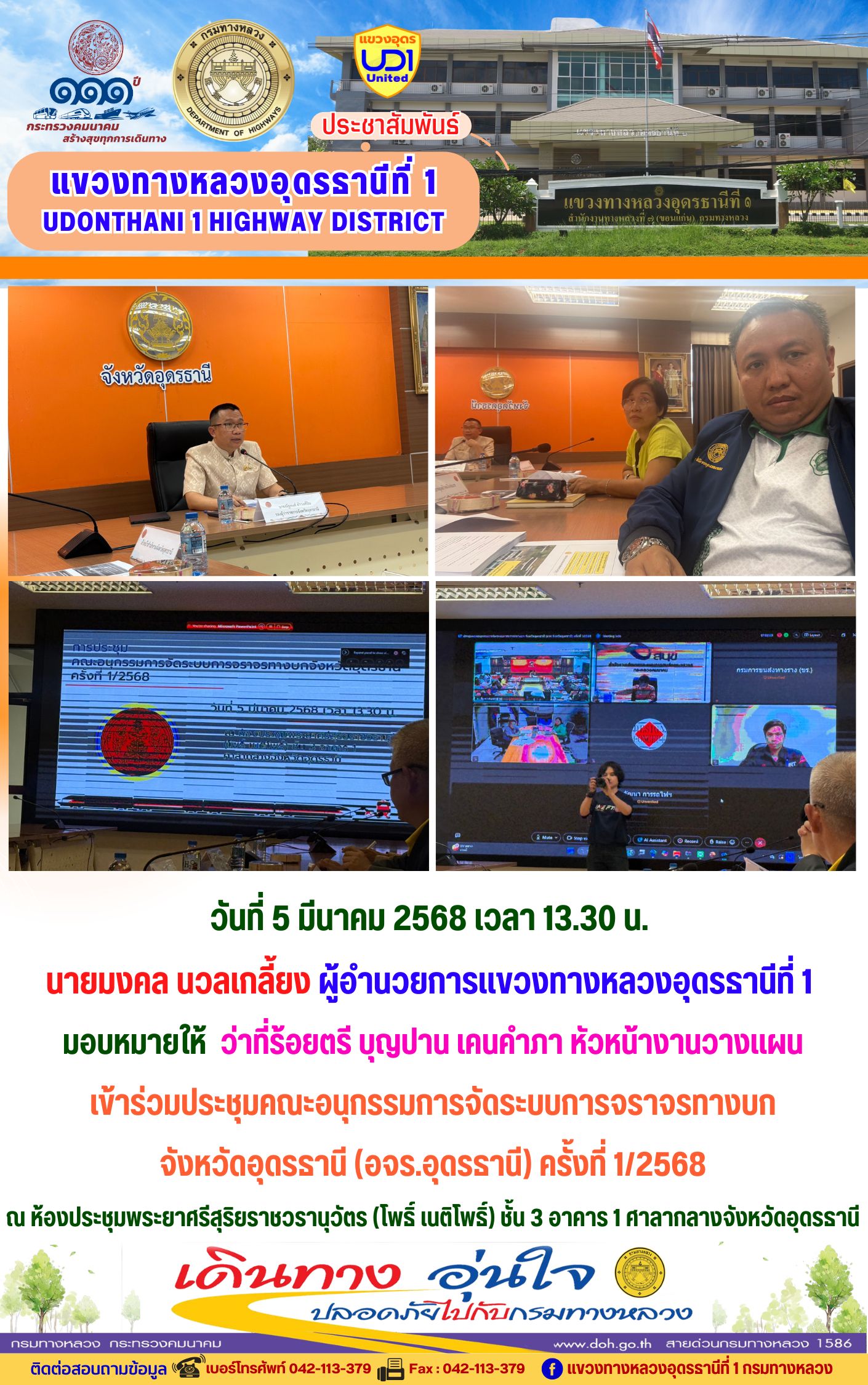 เข้าร่วมประชุมคณะอนุกรรมการจัดระบบการจราจรทางบก จังหวัดอุดรธานี (อจร.อุดรธานี) ครั้งที่ 1/2568