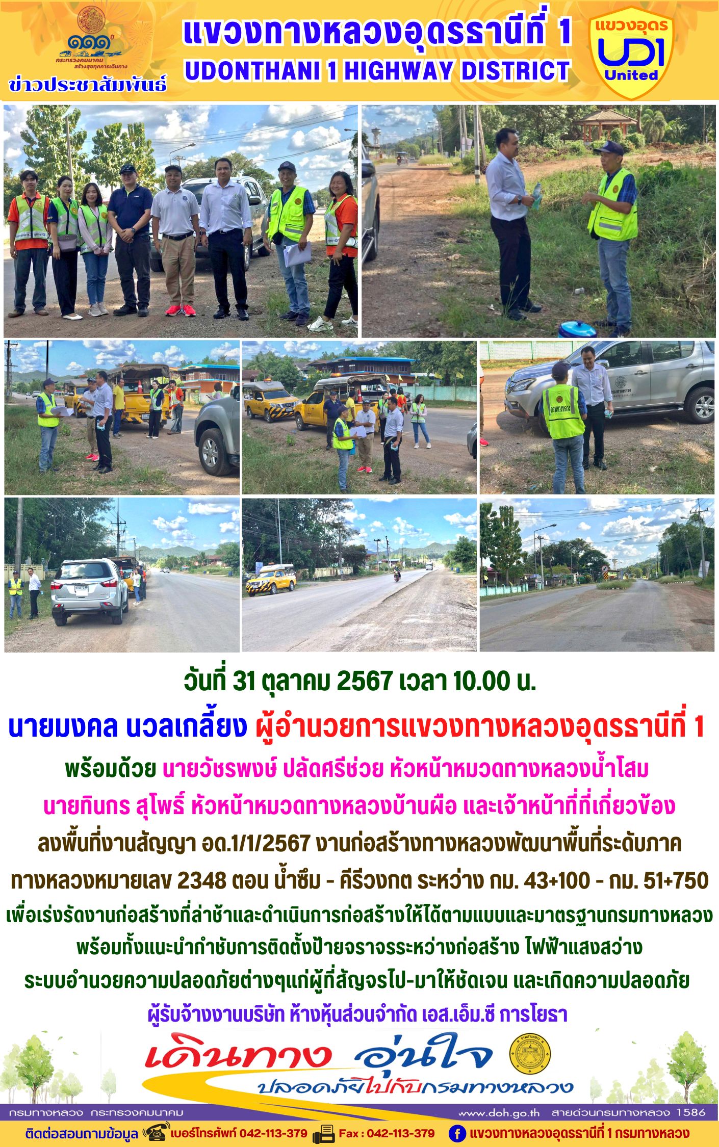 ลงพื้นที่งานสัญญา อด.1/1/2567 งานก่อสร้างทางหลวงพัฒนาพื้นที่ระดับภาค
