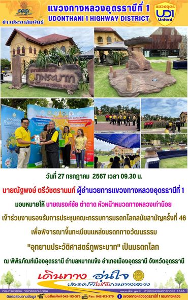 เข้าร่วมงานรองรับการประชุมคณะกรรมการมรดกโลกสมัยสามัญครั้งที่ 46 เพื่อพิจารณาขึ้นทะเบียนแหล่งมรดกทางวัฒนธรรม "อุทยานประวัติศาสตร์ภูพระบาท" เป็นมรดกโลก