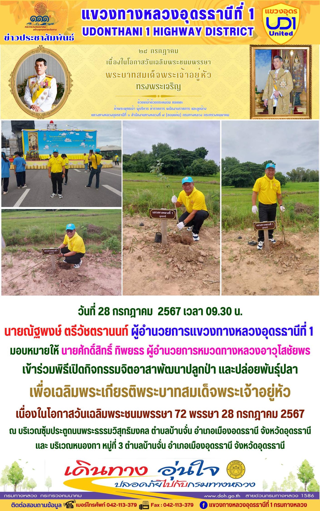 gข้าร่วมพิธีเปิดกิจกรรมจิตอาสาพัฒนาปลูกป่า และปล่อยพันธุ์ปลา เพื่อเฉลิมพระเกียรติพระบาทสมเด็จพระเจ้าอยู่หัว เนื่องในโอกาสวันเฉลิมพระชนมพรรษา 72 พรรษา 28 กรกฎาคม 2567