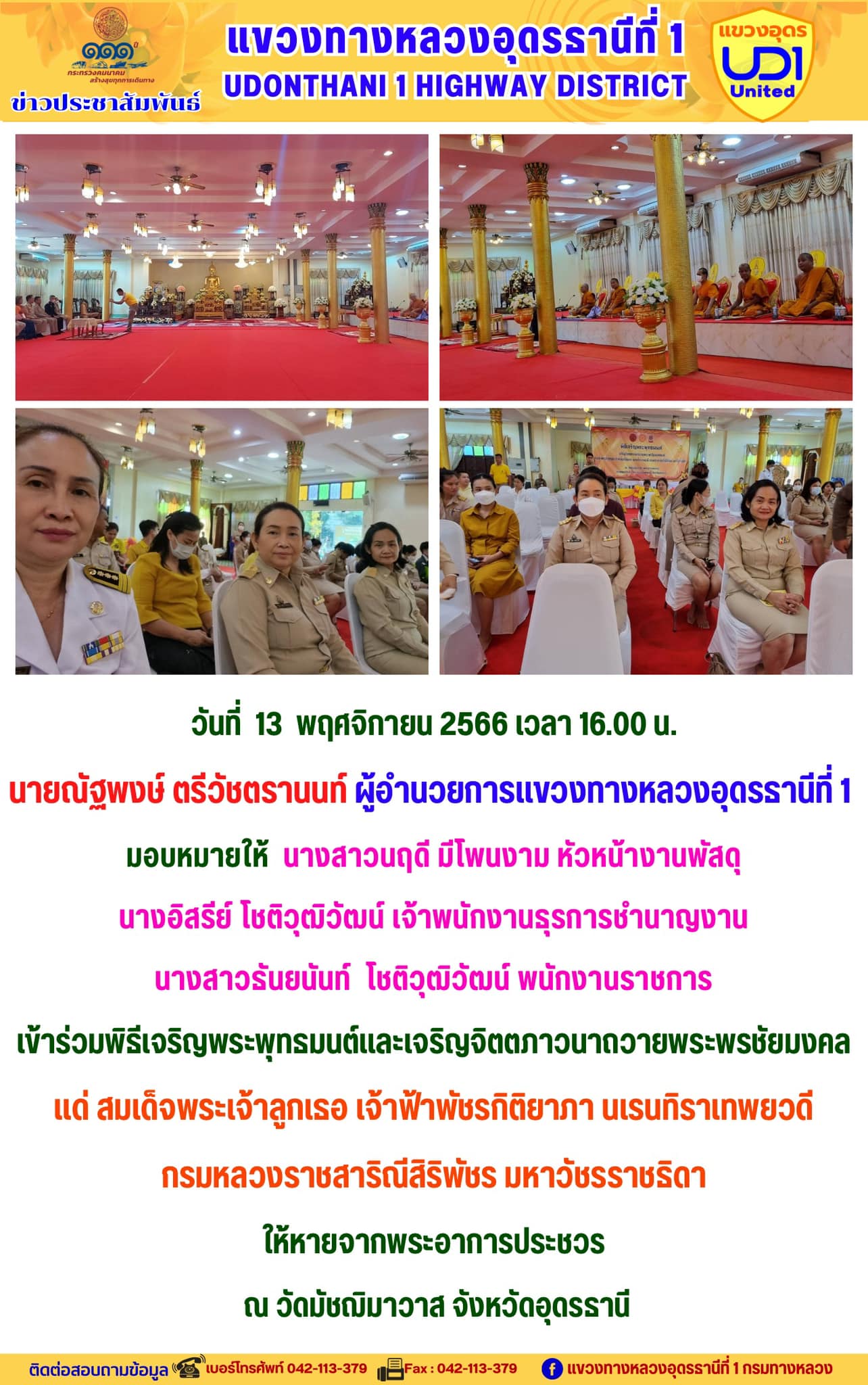 นายณัฐพงษ์ ตรีวัชตรานนท์ ผู้อำนวยการแขวงทางหลวงอุดรธานีที่ 1 พร้อมด้วย นายสมเด็จ ปุระเทพ รองผู้อำนวยการ (ฝ่ายปฏิบัติการ) , นายศุภชัย ศรีโยธี รองผู้อำนวยการ (ฝ่ายวิศกรรม) , นางพานิช สาระมาศ รองผู้อำนวยการ (ฝ่ายบริหารงานทั่วไป) และเจ้าหน้าที่ในสังกัดร่วมแต่งกายสวมใส่ชุดผ้าไทย ตามมาตรการส่งเสริมและสนับสนุนการใช้และสวมใส่ผ้าไทยของกรมทางหลวง ซึ่งเป็นมาตรการตามนโยบายของรัฐบาลในการส่งเสริมและสนับสนุนให้ข้าราชการ ประชาชน แต่งกายด้วยผ้าไทย ตามความเหมาะสมของท้องถิ่นเพิ่มขึ้น