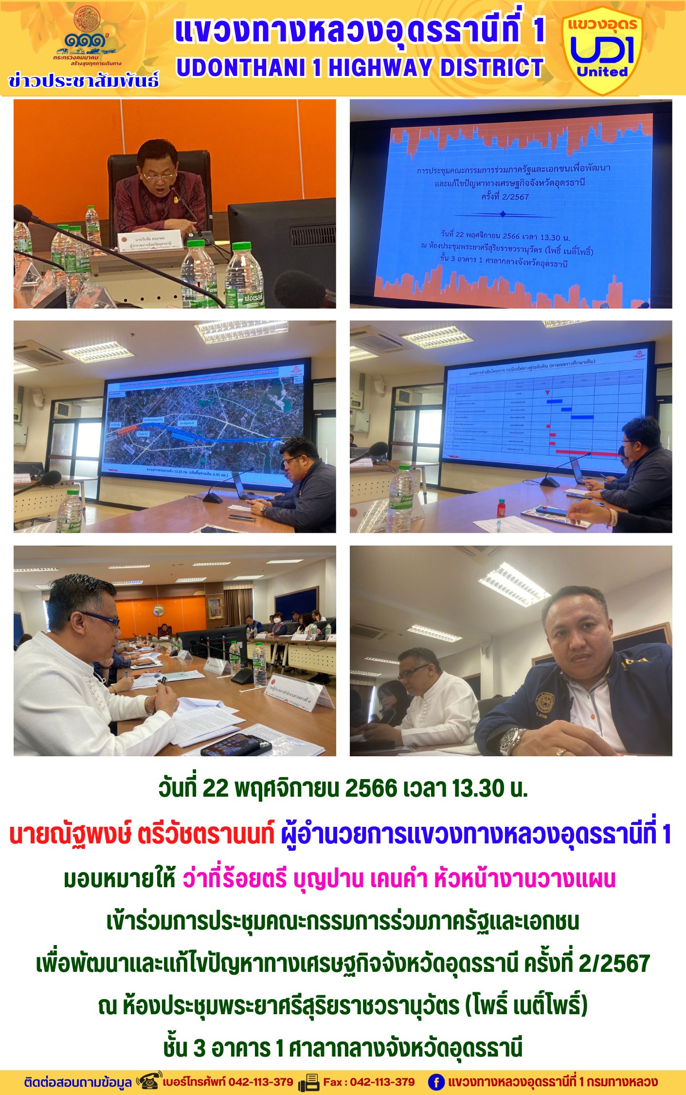 เข้าร่วมการประชุมคณะกรรมการร่วมภาครัฐและเอกชน เพื่อพัฒนาและแก้ไขปัญหาทางเศรษฐกิจจังหวัดอุดรธานี ครั้งที่ 2/2567