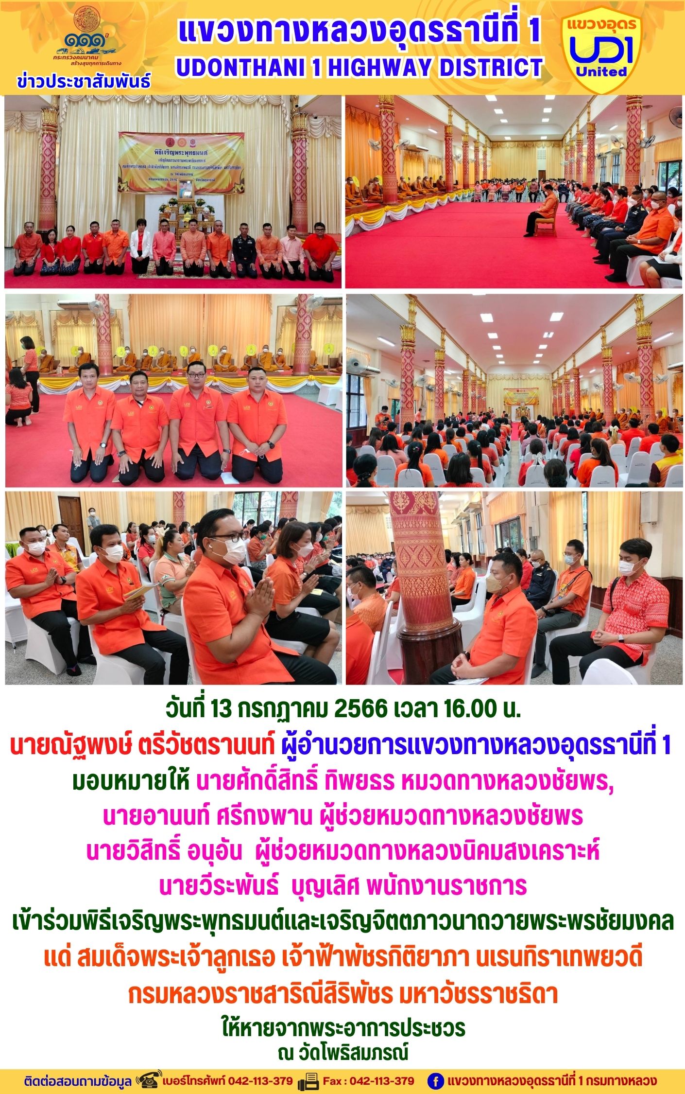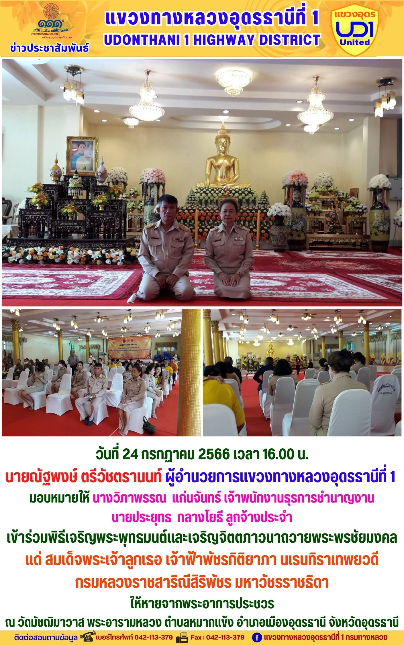 24-7-66 เข้าร่วมพิธีเจริญพระพุทธมนต์และเจริญจิตตภาวนาถวายพระพรชัยมงคล แด่ สมเด็จพระเจ้าลูกเธอ เจ้าฟ้าพัชรกิติยาภา นเรนทิราเทพยวดี กรมหลวงราชสาริณีสิริพัชร มหาวัชรราชธิดา ให้หายจากพระอาการประชวร