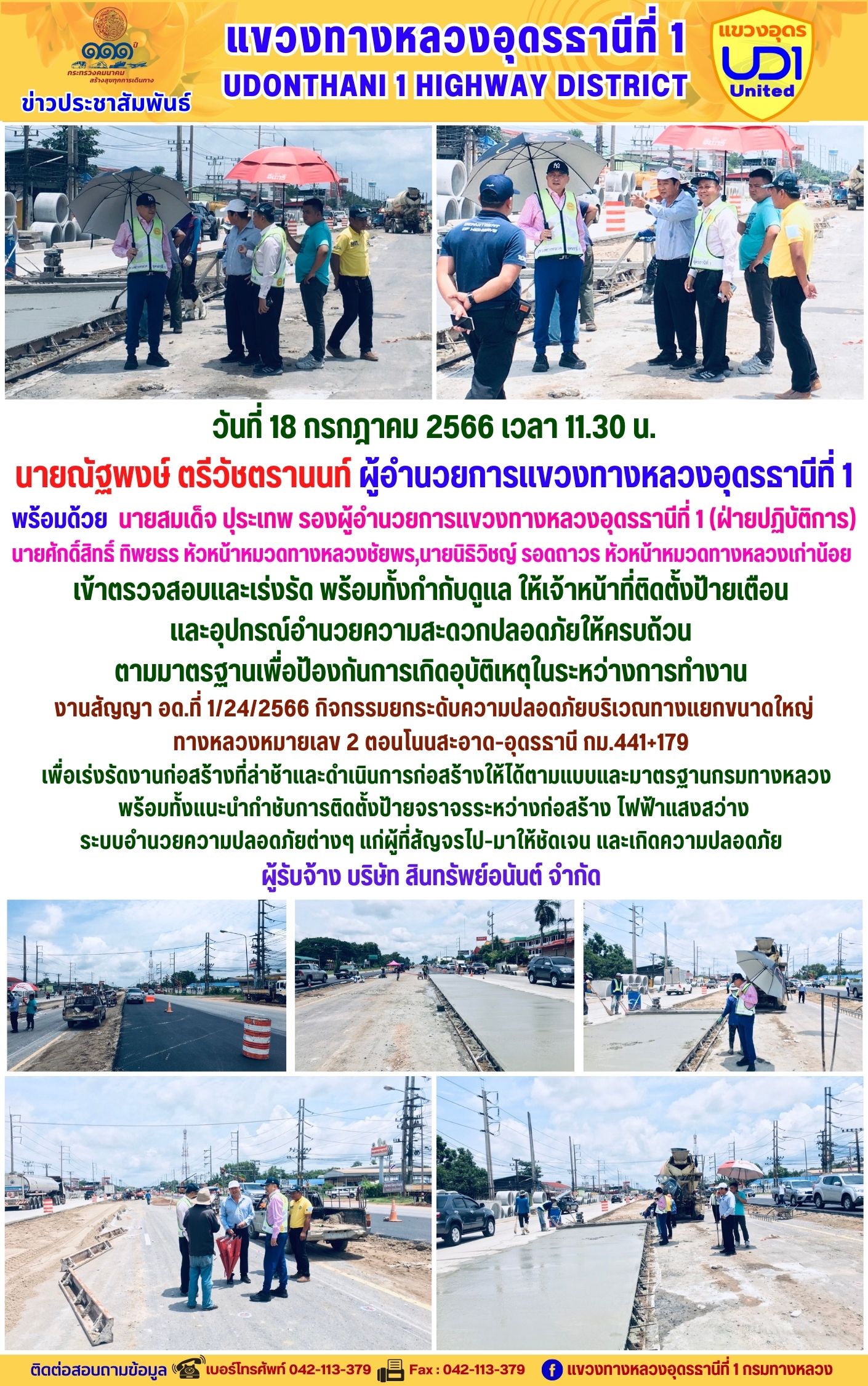 เข้าตรวจสอบและเร่งรัด งานสัญญา อด.ที่ 1/24/2566 กิจกรรมยกระดับความปลอดภัยบริเวณทางแยกขนาดใหญ่ ทางหลวงหมายเลข 2 ตอนโนนสะอาด-อุดรธานี กม.441+179