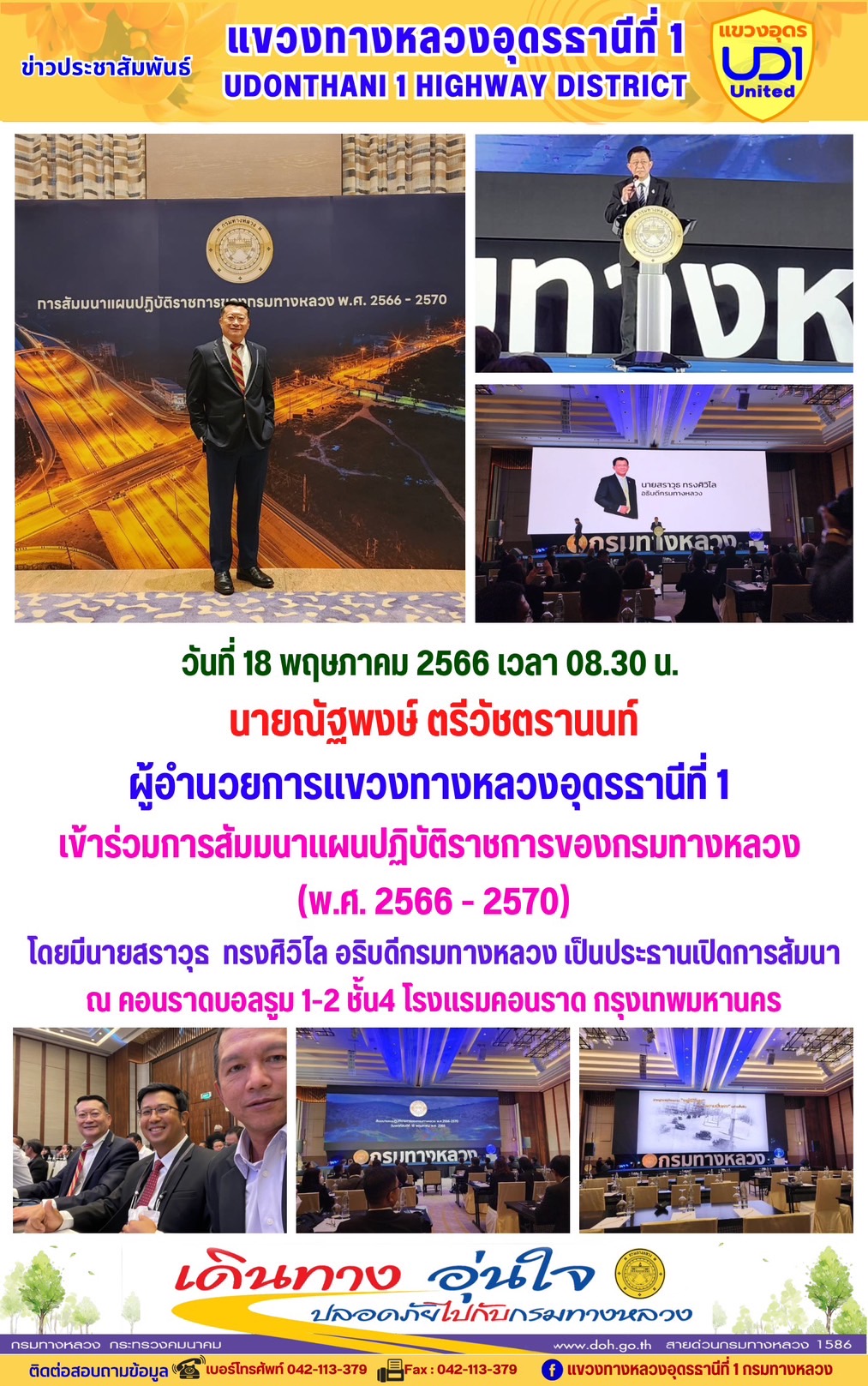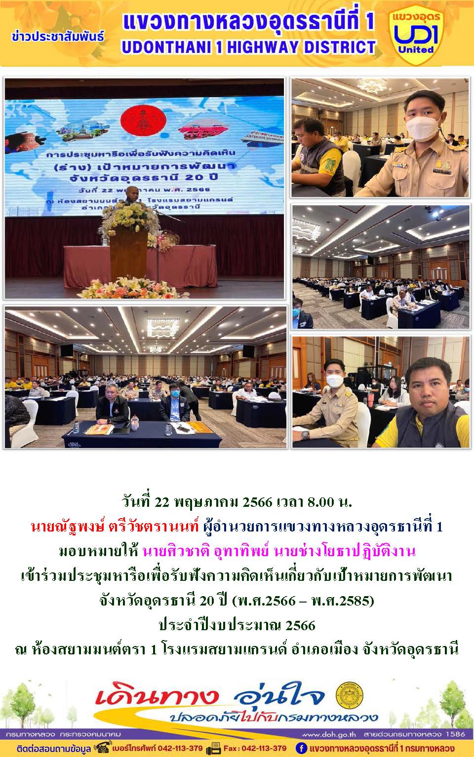 นายณัฐพงษ์ ตรีวัชตรานนท์ ผู้อำนวยการแขวงทางหลวงอุดรธานีที่ 1 เข้าร่วมการสัมมนาแผนปฏิบัติราชการของกรมทางหลวง (พ.ศ. 2566 - 2570)