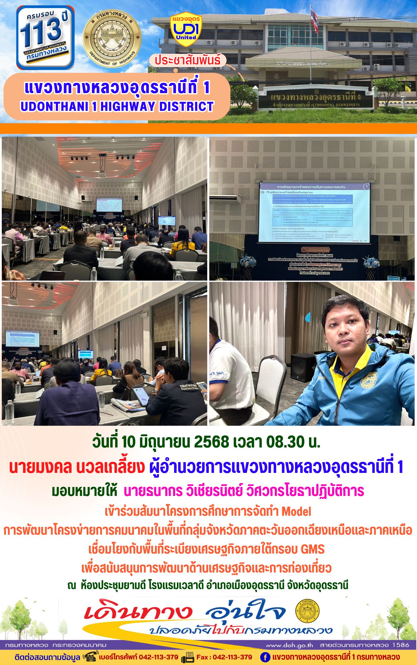 เข้าร่วมสัมนาโครงการศึกษาการจัดทำ Model การพัฒนาโครงข่ายการคมนาคมในพื้นที่กลุ่มจังหวัดภาคตะวันออกเฉียงเหนือและภาคเหนือ เชื่อมโยงกับพื้นที่ระเบียงเศรษฐกิจภายใต้กรอบ GMS เพื่อสนับสนุนการพัฒนาด้านเศรษฐกิจและการท่องเที่ยว