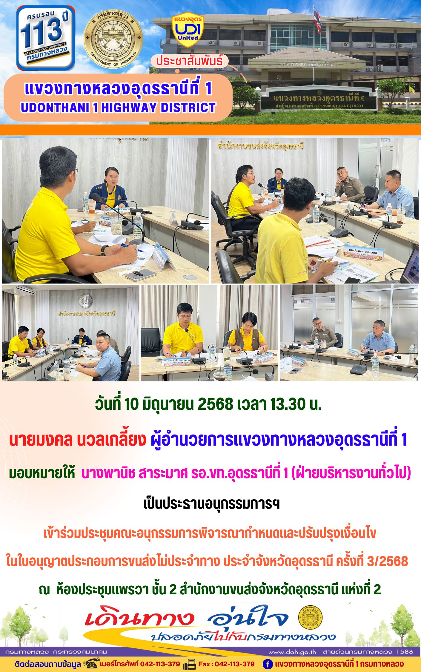 ประชุมคณะอนุกรรมการพิจารณากำหนดและปรับปรุงเงื่อนไข ในใบอนุญาตประกอบการขนส่งไม่ประจำทาง ประจำจังหวัดอุดรธานี ครั้งที่ 3/2568