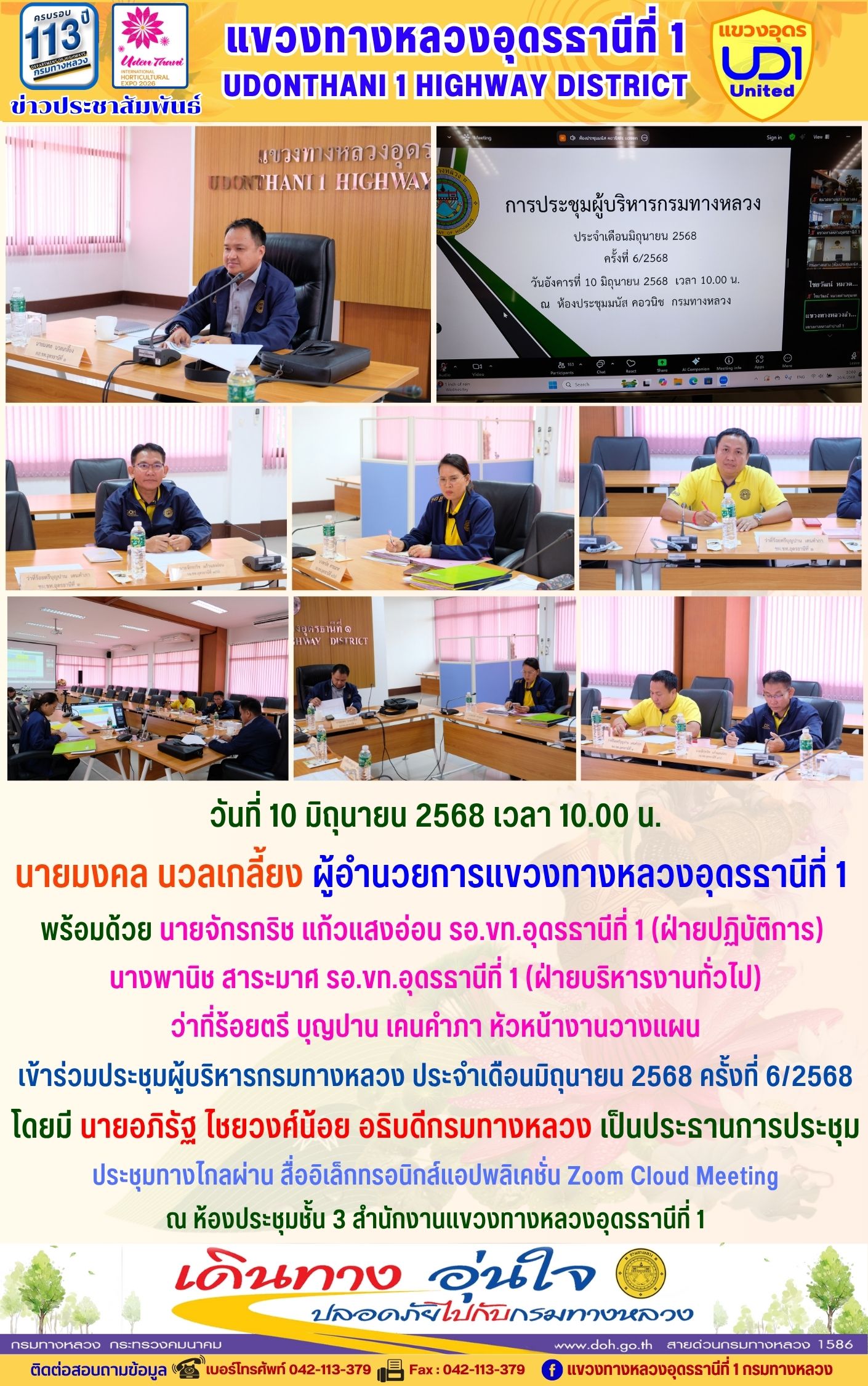 ประชุมผู้บริหารกรมทางหลวง ประจำเดือนมิถุนายน 2568 ครั้งที่ 6/2568