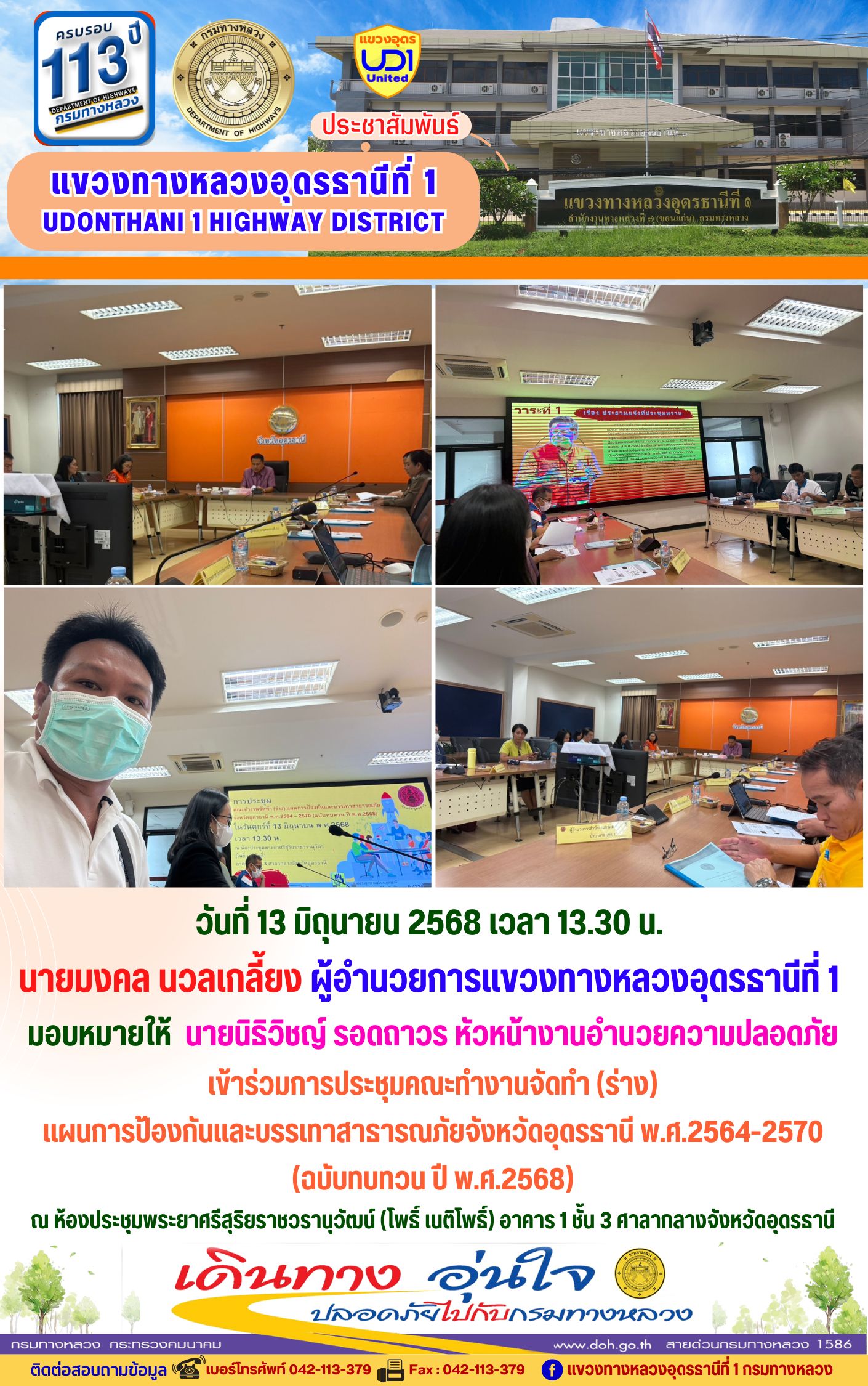 เข้าร่วมการประชุมคณะทำงานจัดทำ (ร่าง) แผนการป้องกันและบรรเทาสาธารณภัยจังหวัดอุดรธานี พ.ศ.2564-2570 (ฉบับทบทวน ปี พ.ศ.2568)