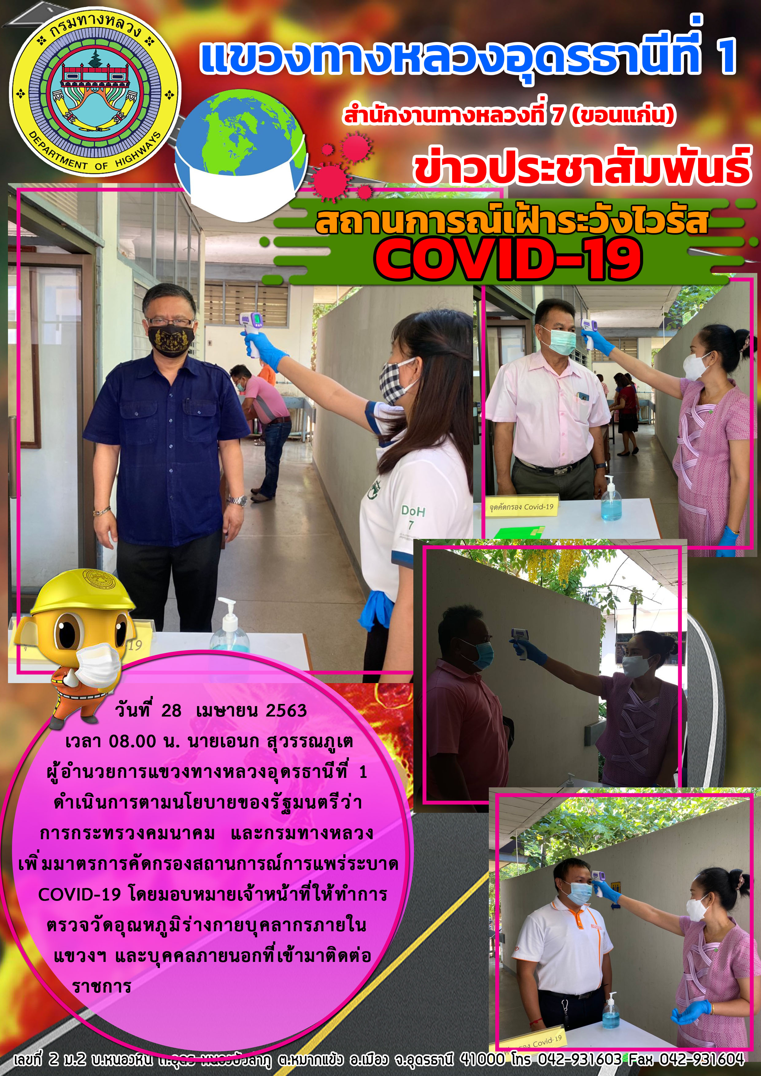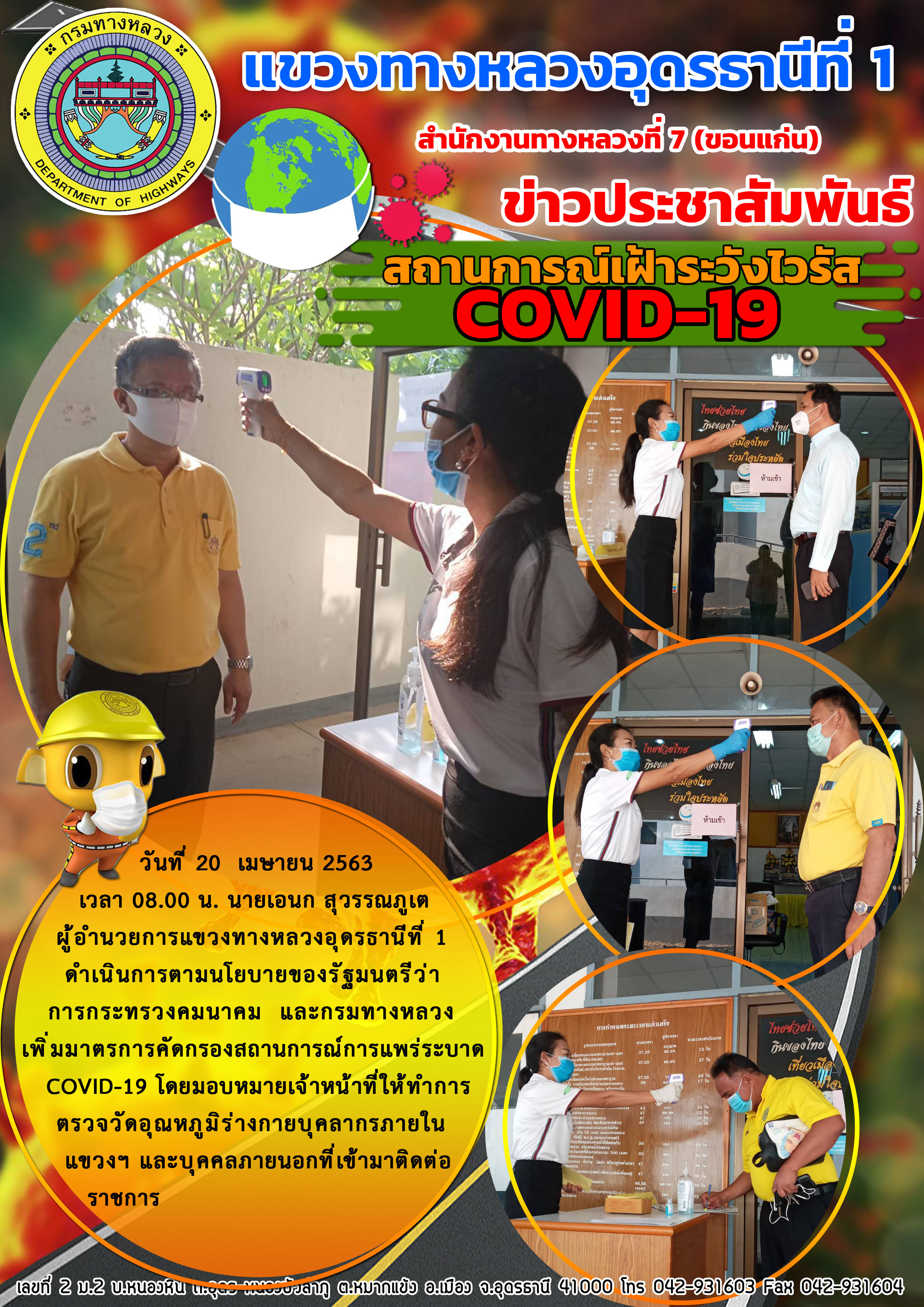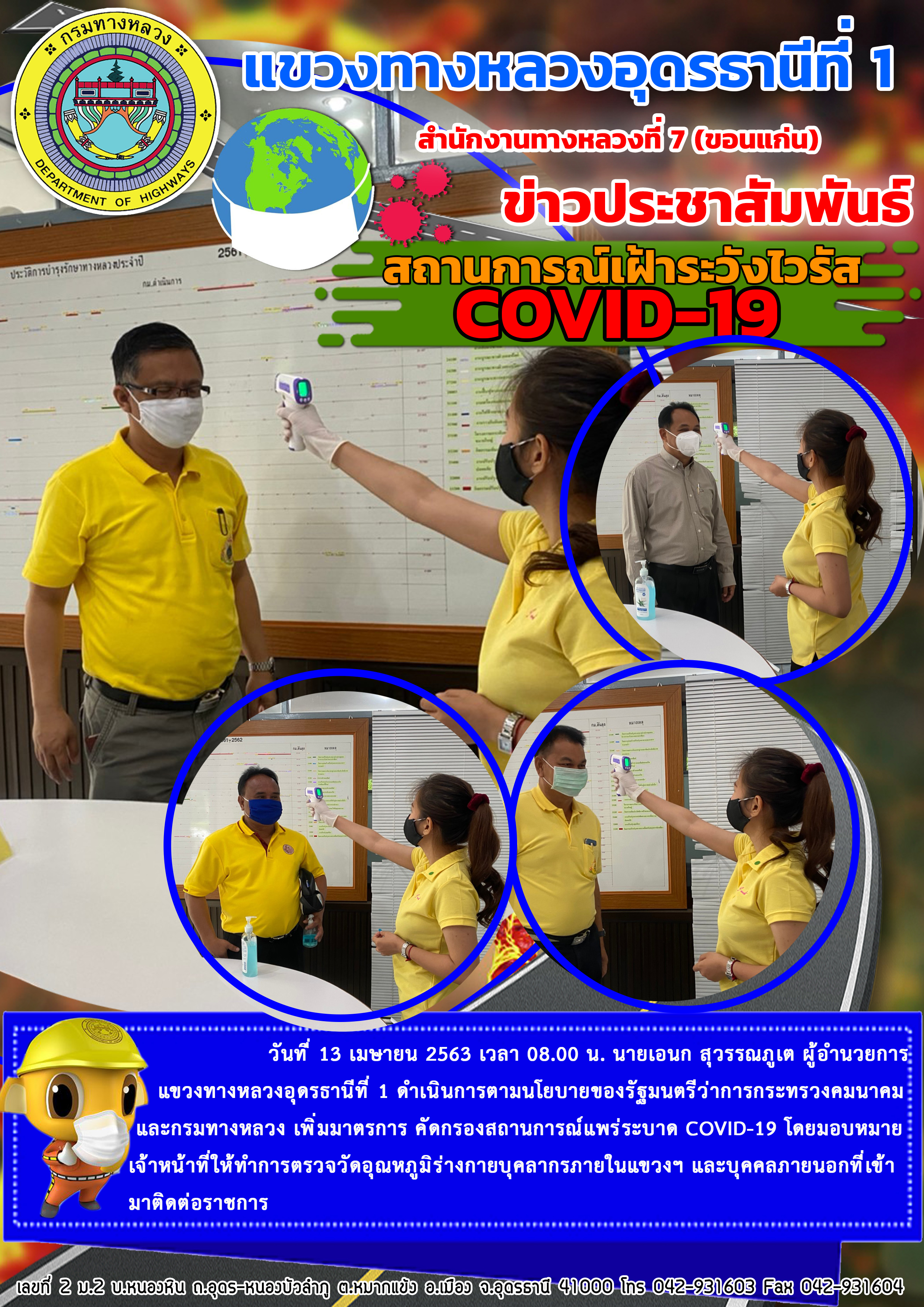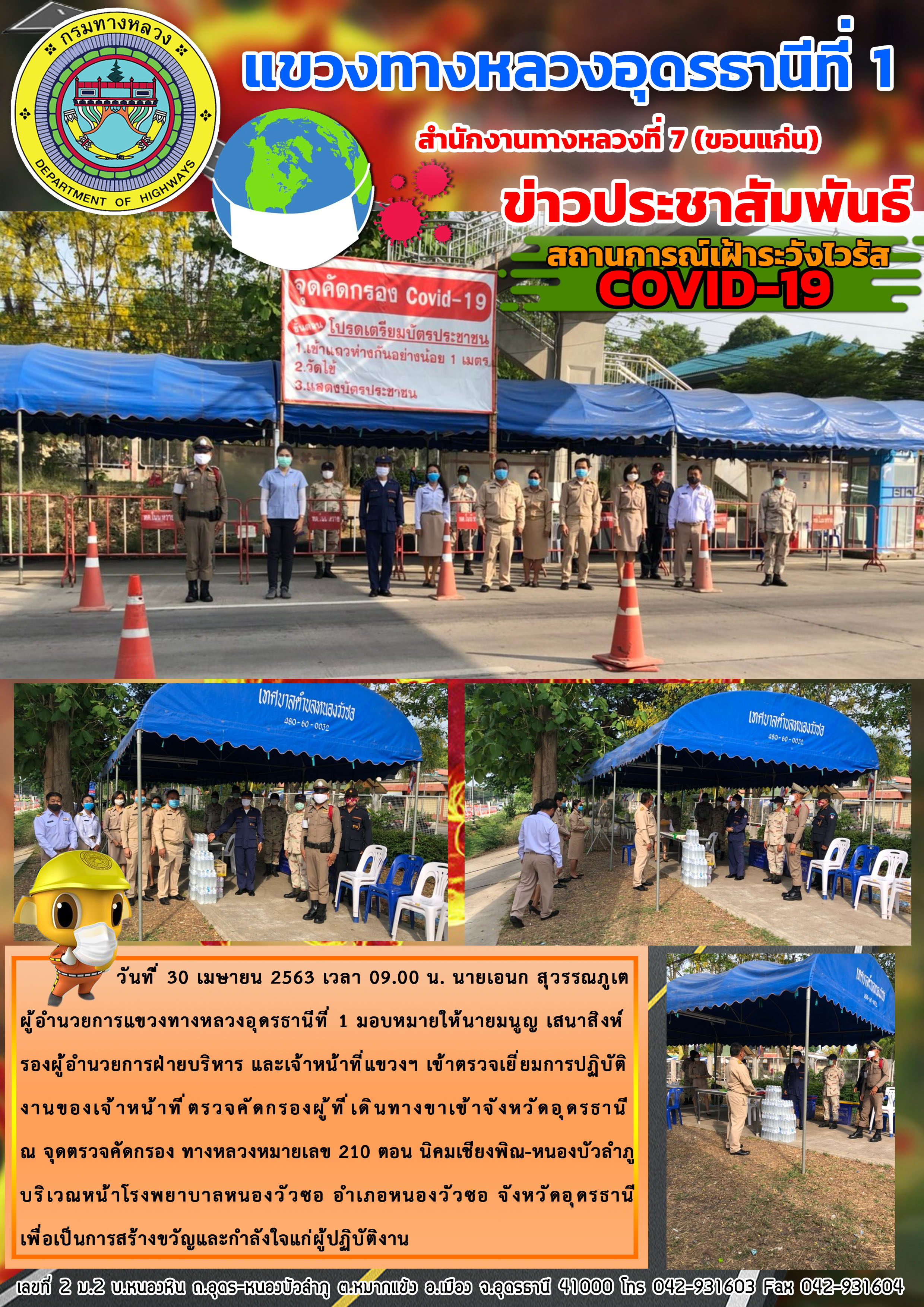 ตรวจเยี่ยม การปฏิบัติงานของเจ้าหน้าที่ตรวจคัดกรองผู้ที่เดินทางขาเข้าจังหวัดอุดรธานี |