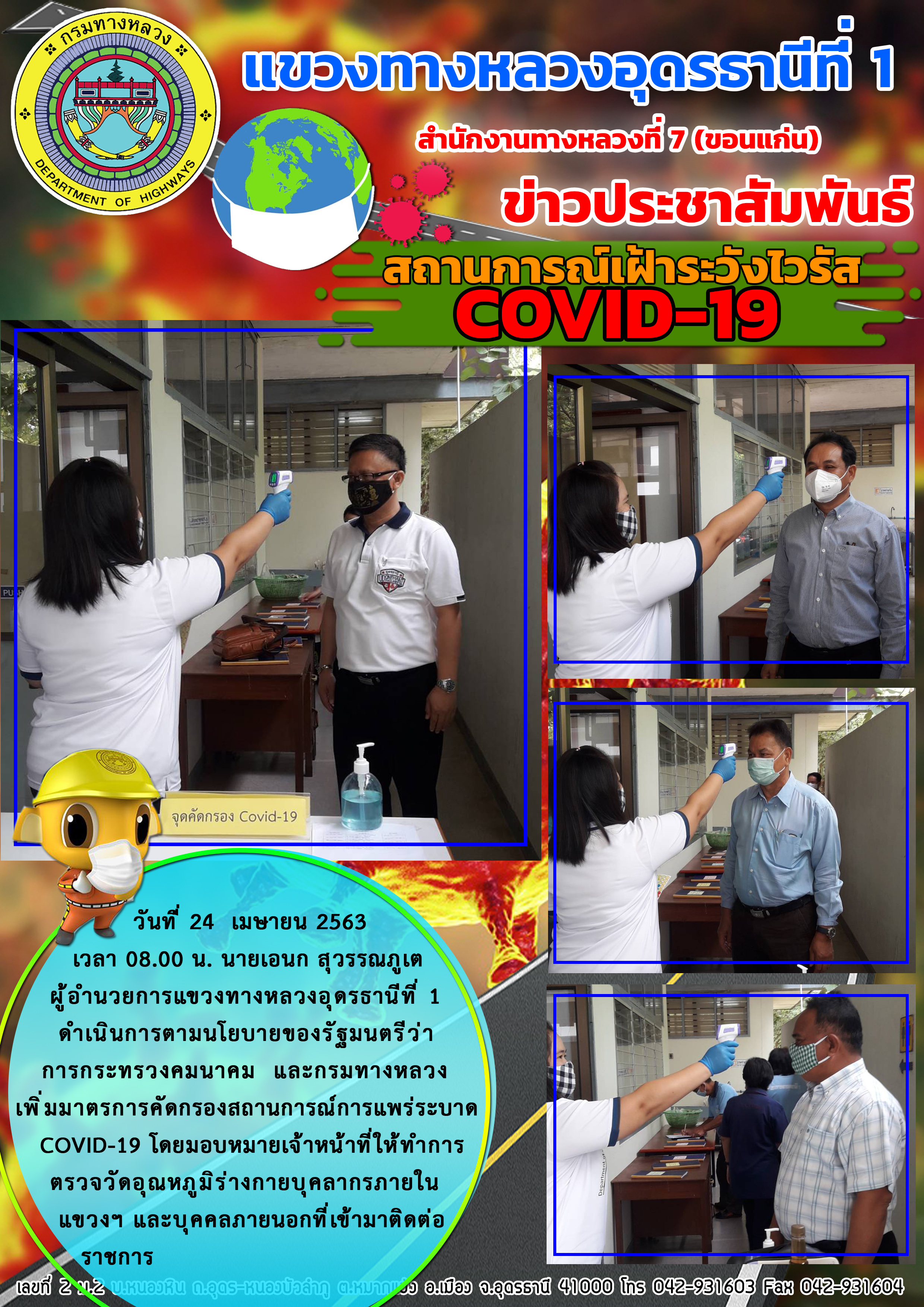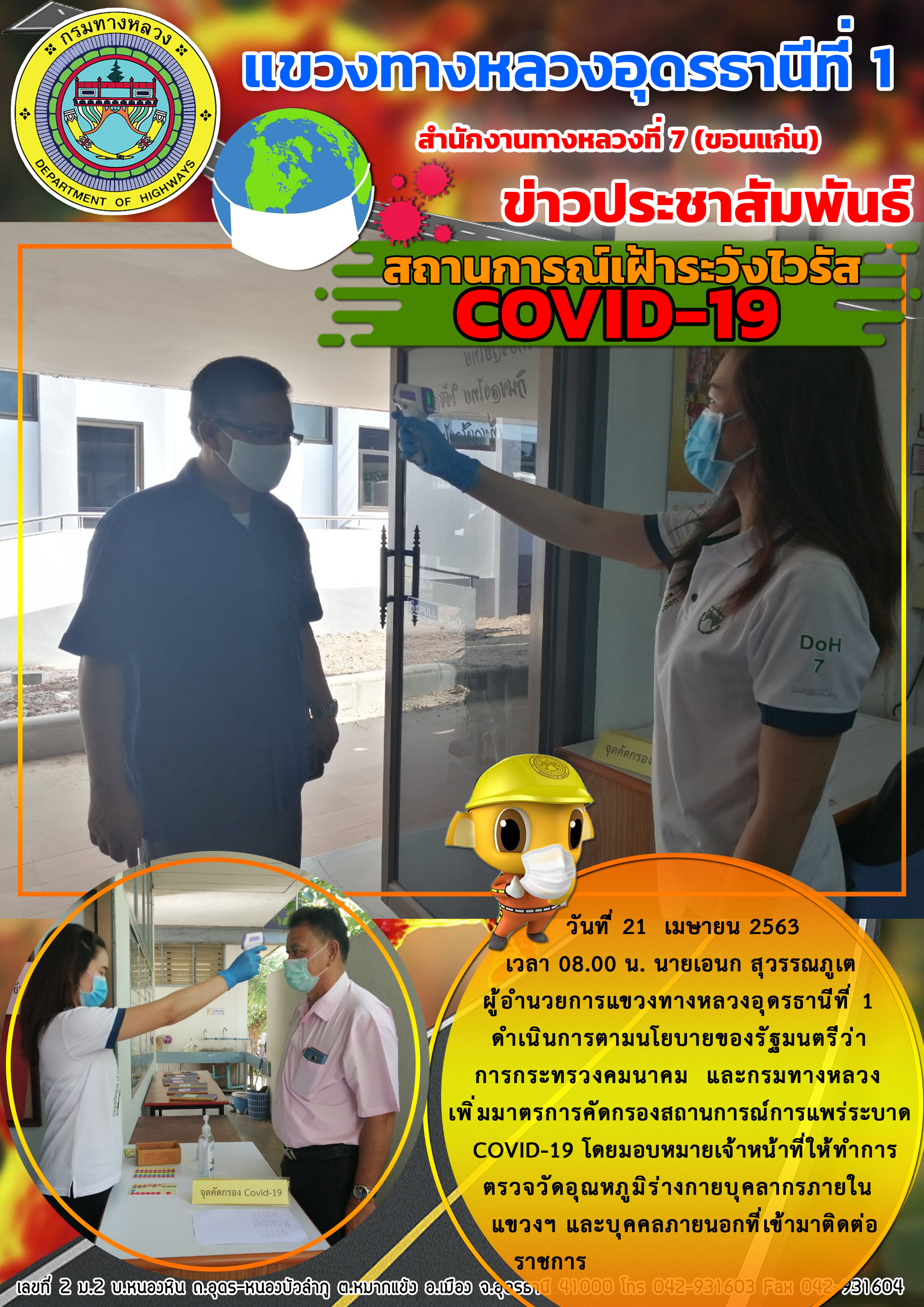 เข้าตรวจเยี่ยม การปฏิบัติงานของเจ้าหน้าที่ตรวจคัดกรองผู้ที่เดินทางขาเข้าจังหวัดอุดรธานี 23-04-63 |