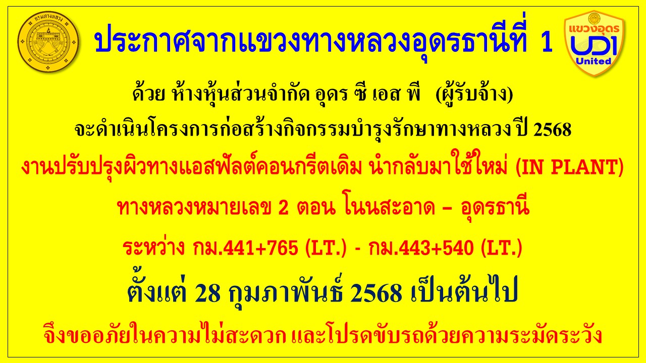 ประกาศจากแขวงทางหลวงอุดรธานีที่ 1