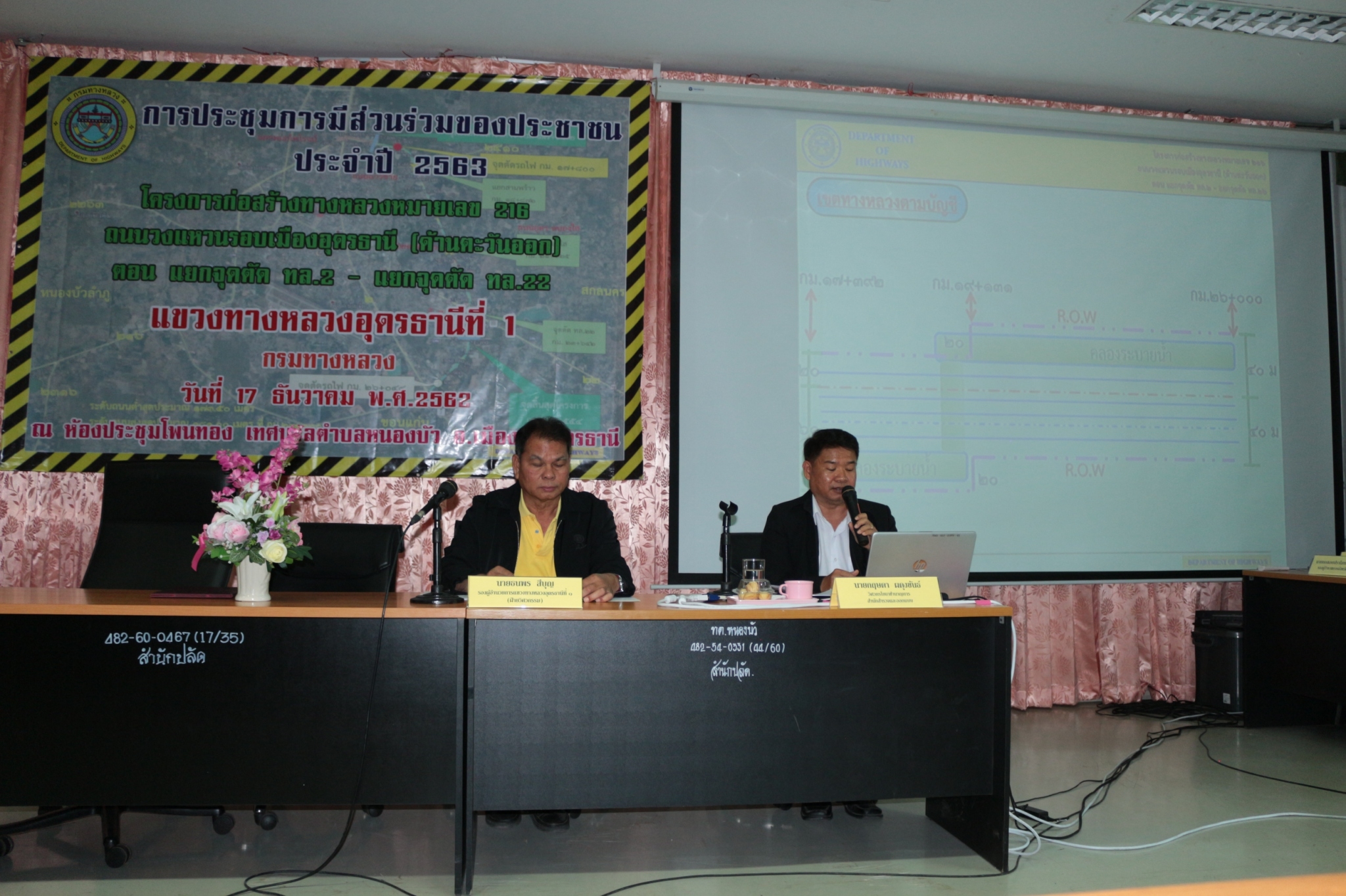 วันที่ 17 ธันวาคม 2562 เวลา 09.00 น. แขวงทางหลวงอุดรธานีที่ 1 ดำเนินการจัดการประชุมการมีส่วนร่วมของประชาชน ปี 2563 โครงการก่อสร้างทางหลวงหมายเลข 216 ถนนวงแหวนรอบเมืองอุดรธานี (ด้านทิศตะวันออก) ตอน แยกจุดตัด ทางหลวงหมายเลข 2 - ทางหลวงหมายเลข 22 ณ ห้องประชุมโพนทอง เทศบาลตำบลหนองบัว อ.เมือง จ.อุดรธานี โดยมีรองผู้ว่าราชการจังหวัดอุดรธานี นายกองเอกปราโมทย์ ธัญญพืช เป็นประธานในพิธี วิทยากรบรรยายโครงการโดย นายกฤษดา ผดุงขันธ์ วิศวกรโยธาชำนาญการ สำนักสำรวจและออกแบบ กรมทางหลวง ผู้เข้าร่วมประชุมเป็นผู้เกี่ยวข้องและมีส่วนได้เสียในพื้นที่ก่อสร้าง ประมาณ 150 คน